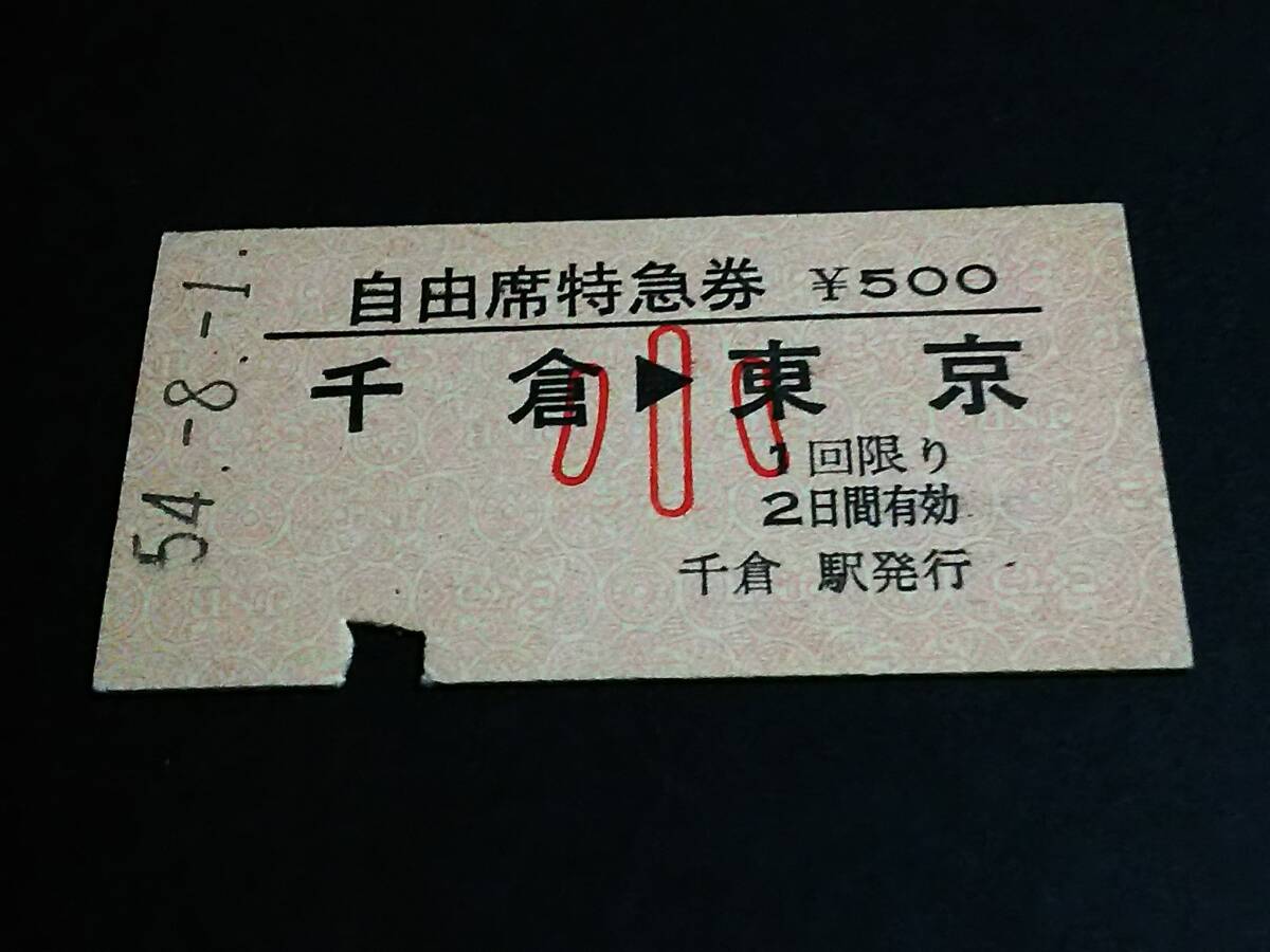 【自由席特急券(A型)】 千倉⇒東京(小) S54.8.1