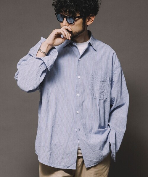 参考商品名:HINSON/ヒンソン レギュラーカラー ロングスリーブストライプシャツ/シワ加工/リラックスフィット