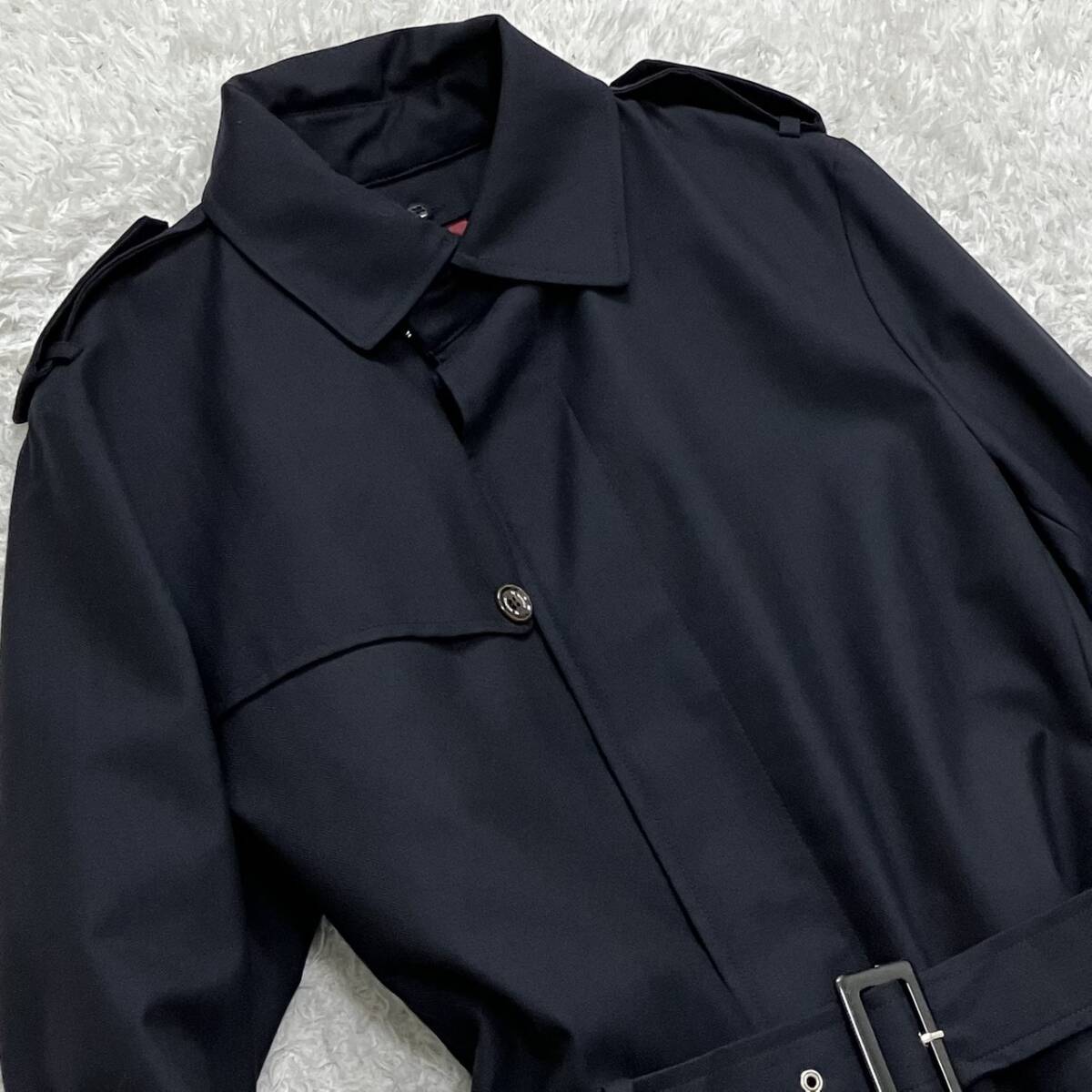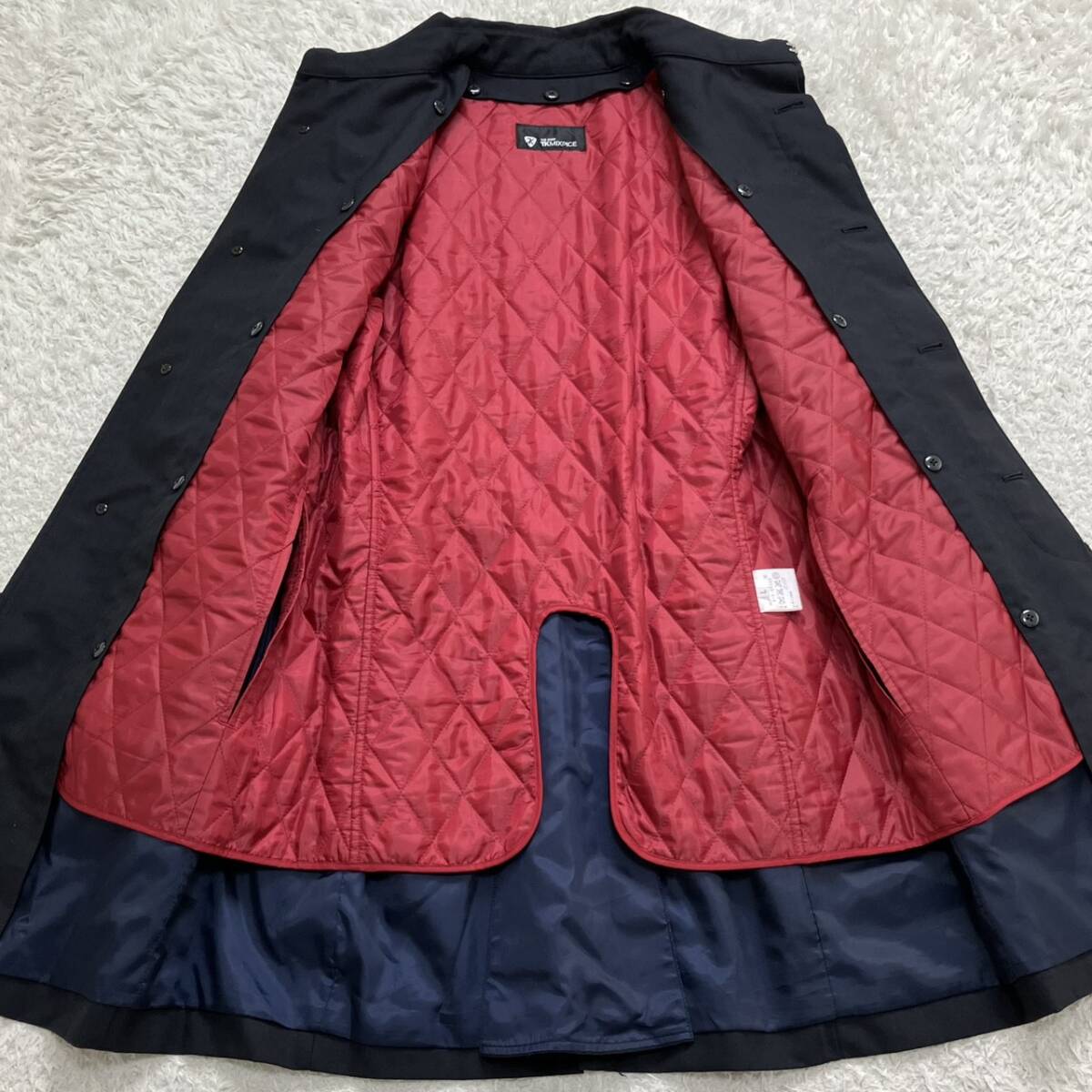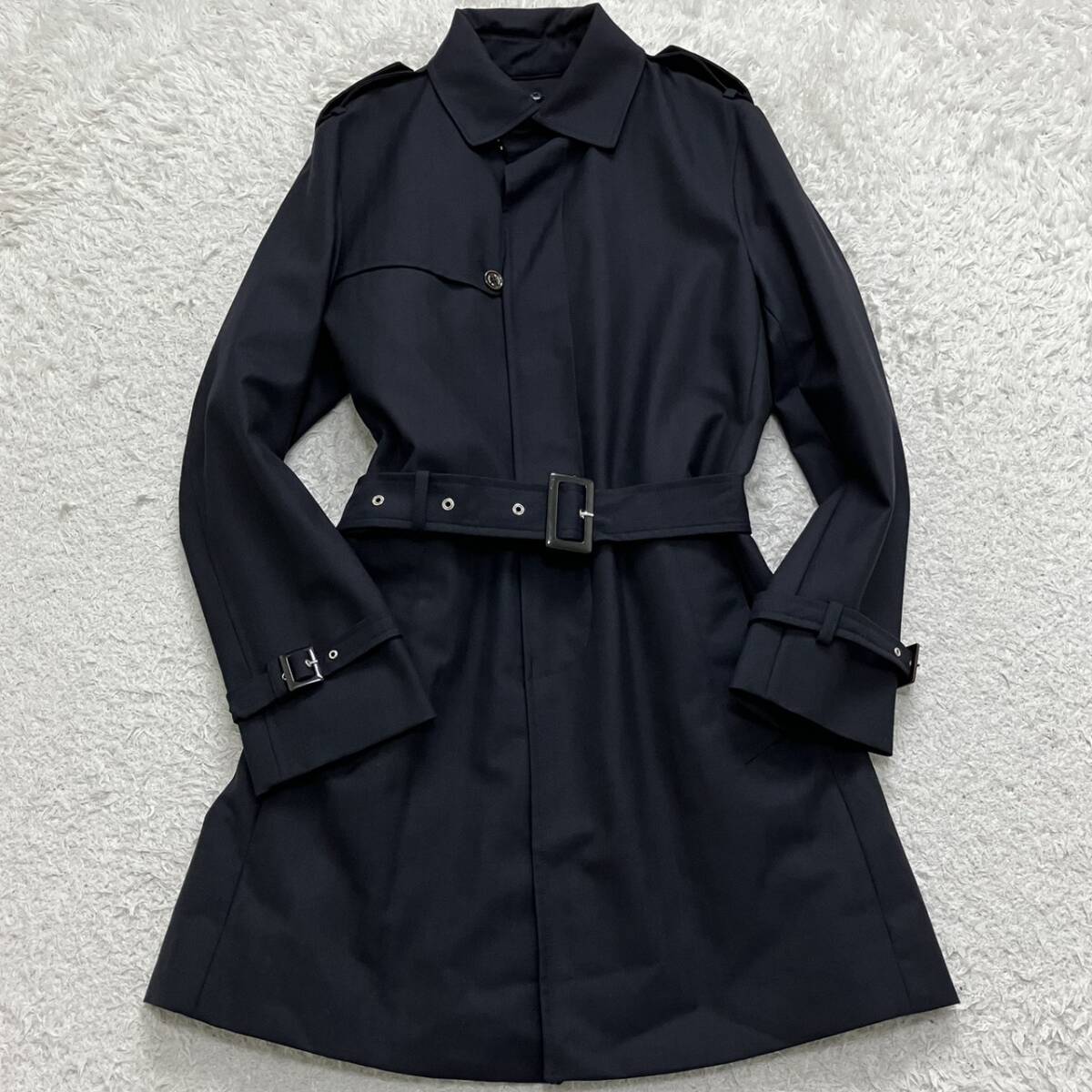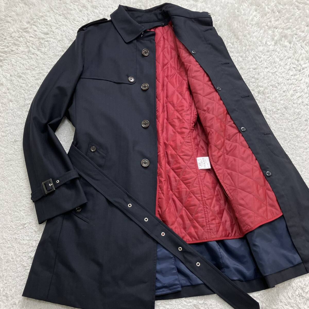 希少L!!極美品!!タケオキクチ TAKEO KIKUCHI ステンカラーコート ロング アウター ヘリンボーン 2WAY ライナー ベルト メンズ ビジネス 紺