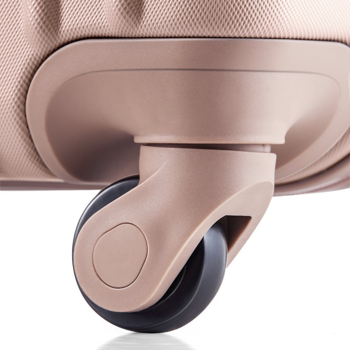 2.【傷・汚れに強いエンボス加工】旅先で、ホテルまでの移動や段差など、荷物を入れるのなら、できるだけ軽く、強い素材いい。そんな経験から、エンボス加工を施したABS+PC混合樹脂を採用しました。衝撃にも強く、無数に細かい凸凹が傷をつきにくくしてくれます。