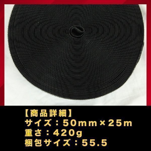▼面ファスナー 50mm 25M 無 黒 強力 クラフト 材料 マジックテープ 補修 補強 パーツ DIY
