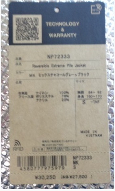 THE NORTH FACE NP72333 リバーシブルエクストリームパイルジャケット グレー系xブラック系 Sサイズ
