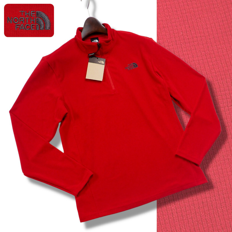 新品正規 ノースフェイス 海外限定 MOUNTAINEER ワッフル地 ミッドレイヤー ロングTシャツ メンズMレッド(RED)