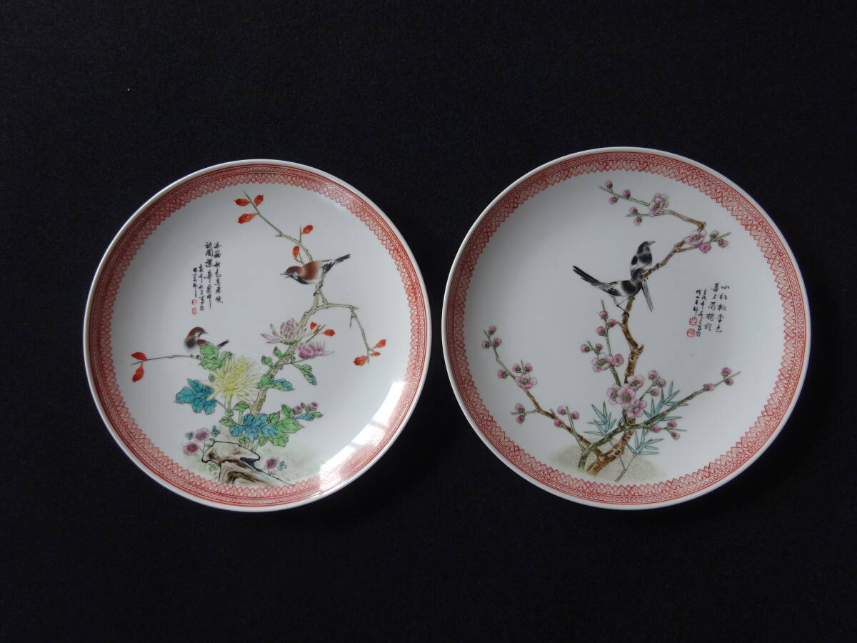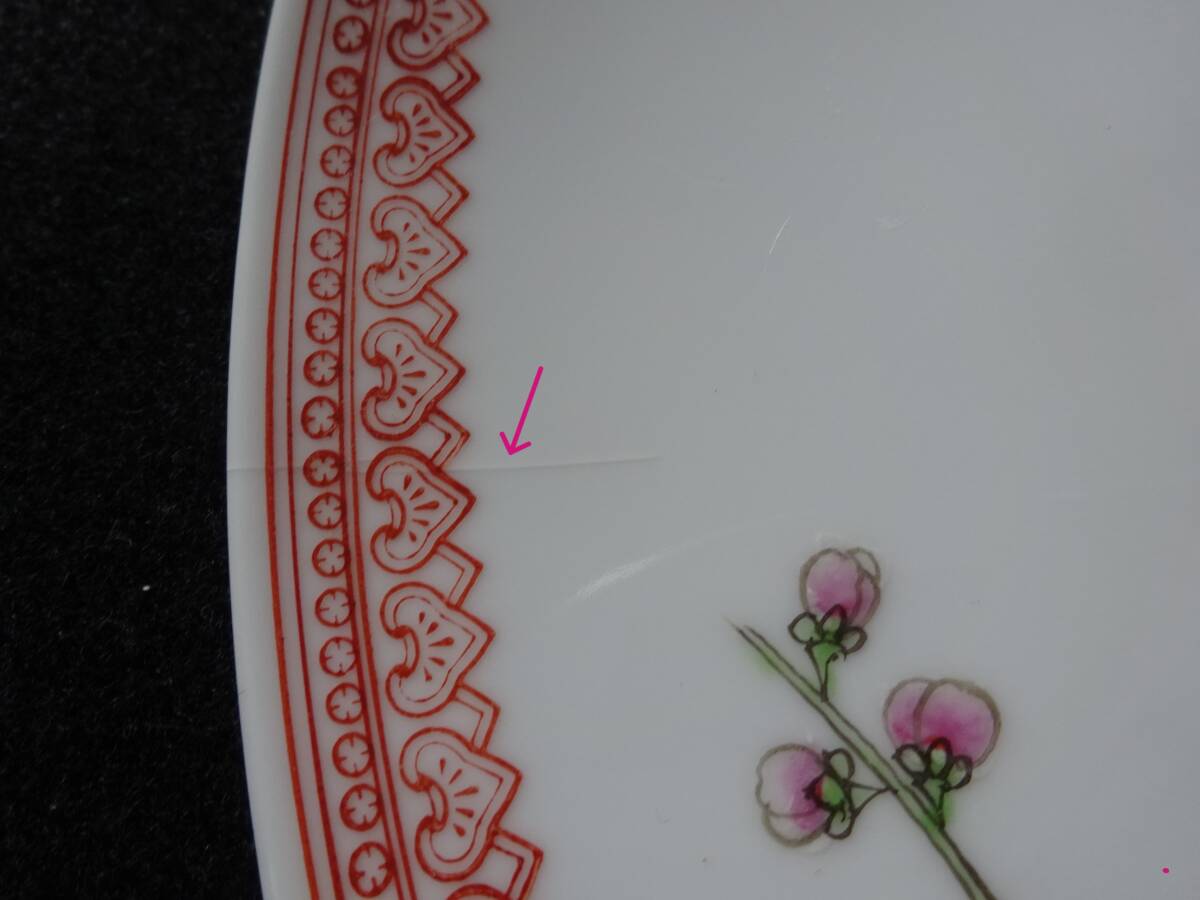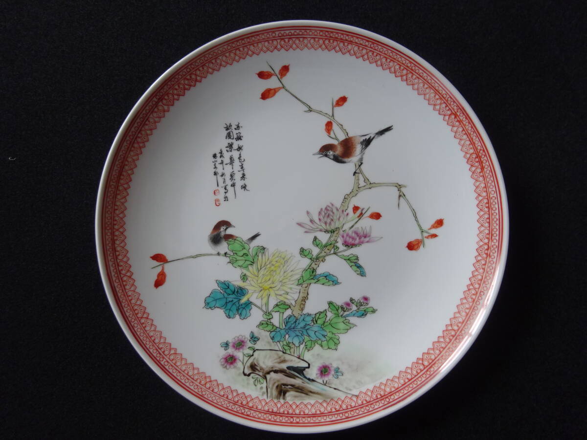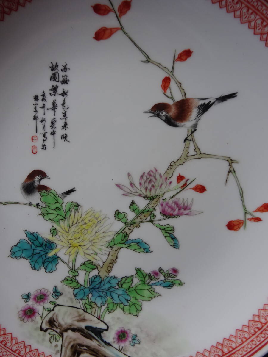 「中国景徳鎮製」印 色絵花鳥ノ図皿 Φ約26cm 皿 2枚(1枚にニュウ有)