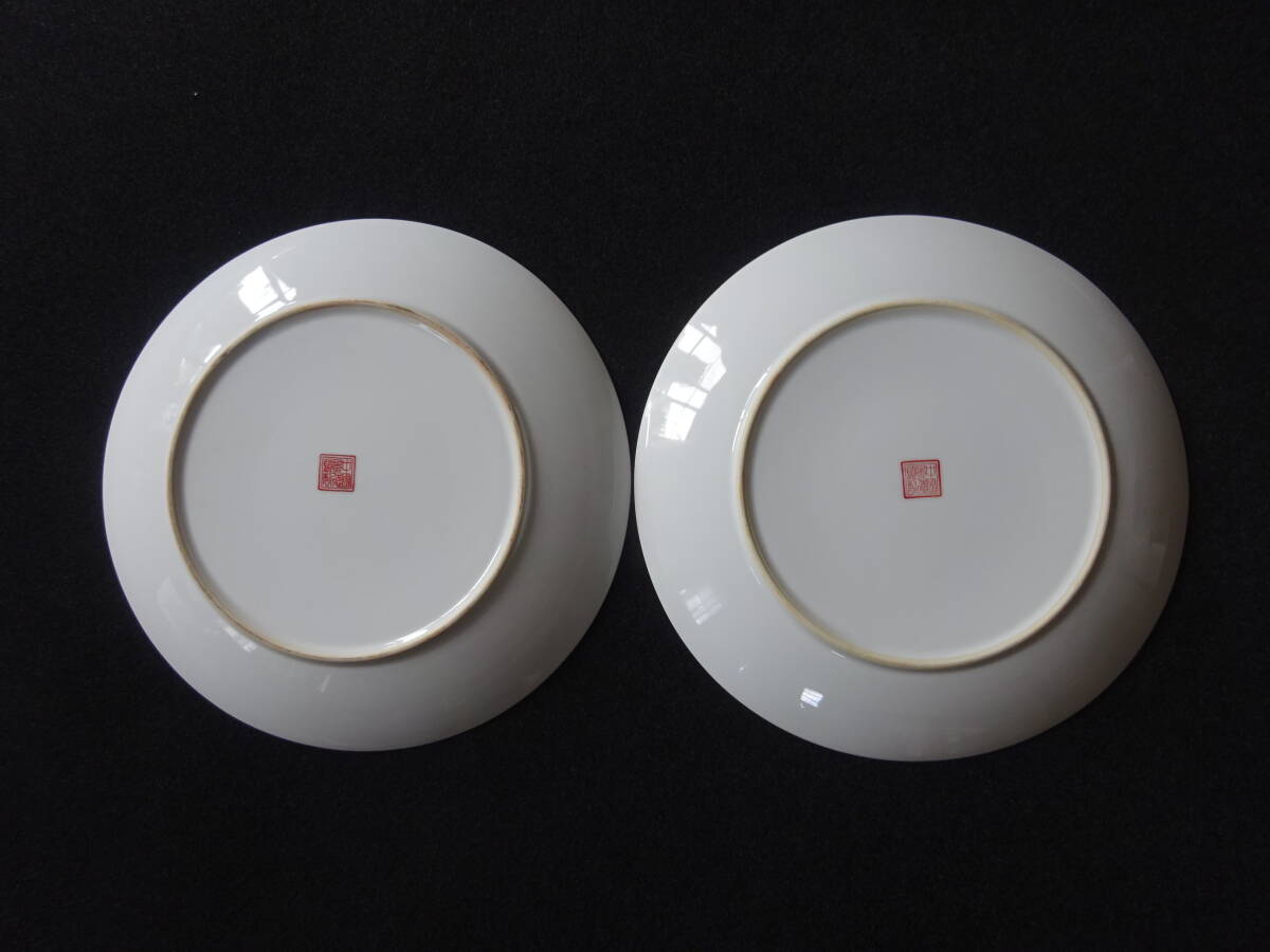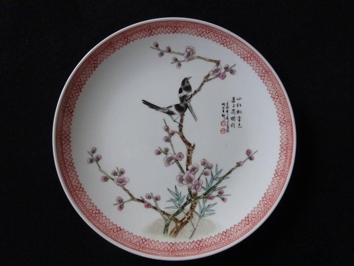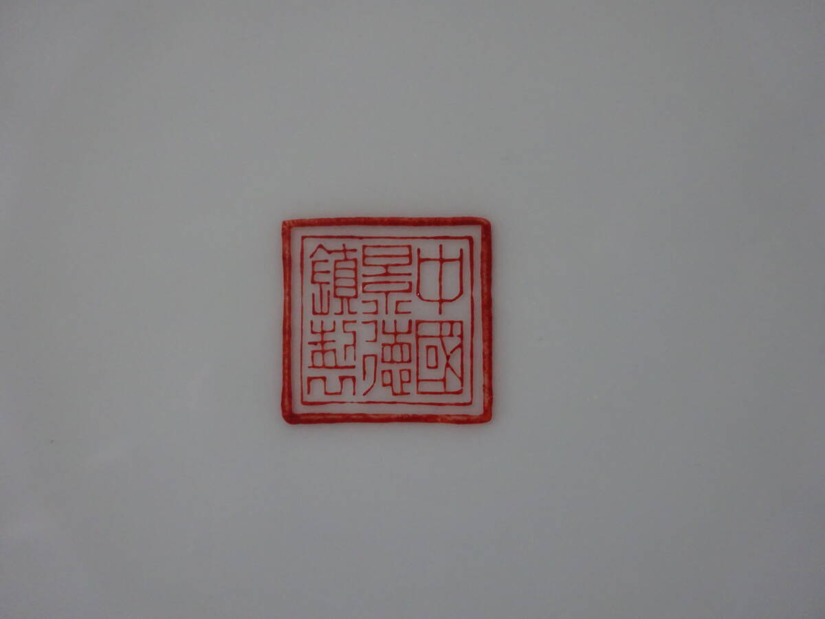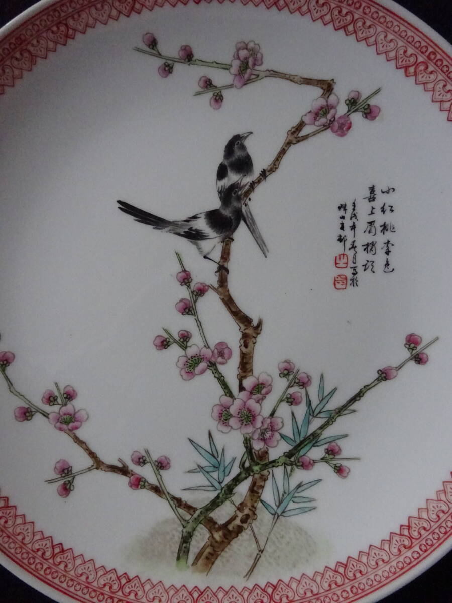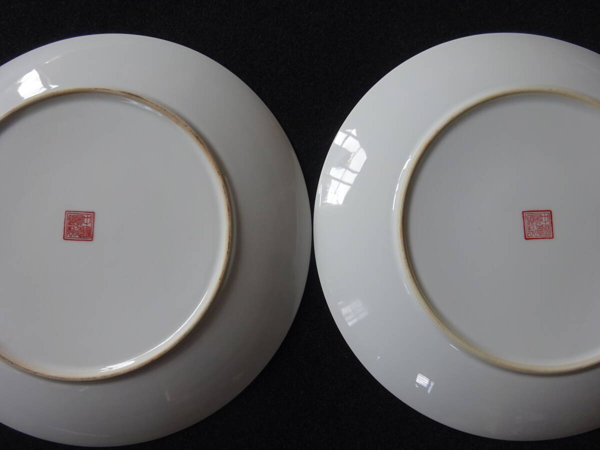 「中国景徳鎮製」印 色絵花鳥ノ図皿 Φ約26cm 皿 2枚(1枚にニュウ有)
