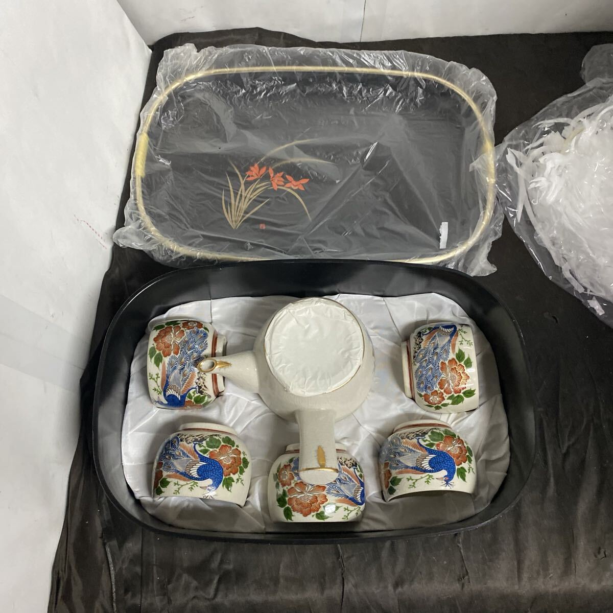未使用品 長期保管品 九谷焼 お盆付き 茶器セット 特選 伝統工芸