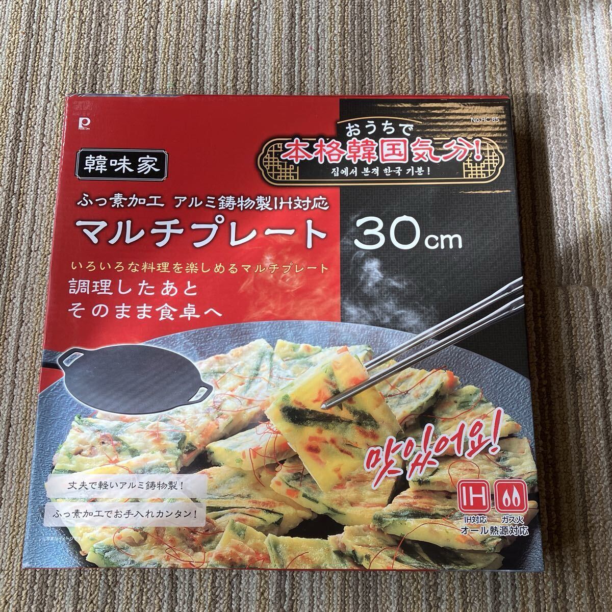 新品、箱入り、パール金属韓味家マルチプレート30cm。フッ素樹脂加工、本体はアルミ合金、ステンレス、IH、ガス火、オール熱源対応。丈夫て、軽く、お手入れ簡単。調理後そのまま食卓で、あつあつを召し上がれます。チヂミ、お好み焼き、焼きそば、野菜炒めなど様々な料理にご利用いだだけます。送料無料。