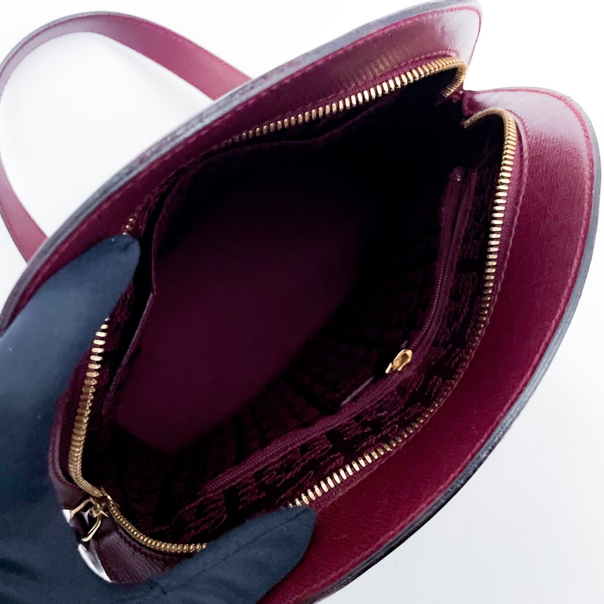 バッグの中の清掃には気をつかっておりますが、わずかな埃、髪の毛等全て取り切れていない場合もございますのでご了承をお願いいたします。