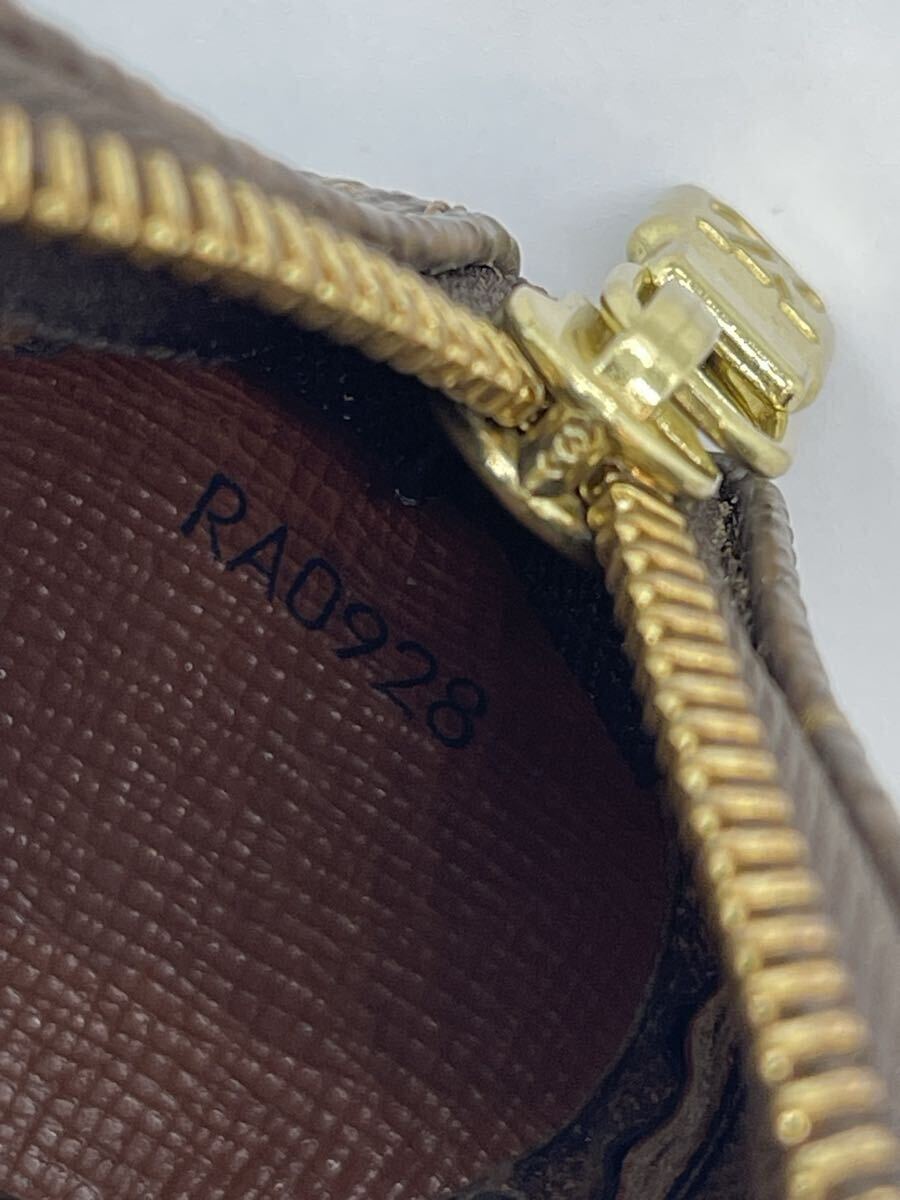 Classic design crafted from monogram canvas with leather trim and gold-tone zipper marked “LV.”