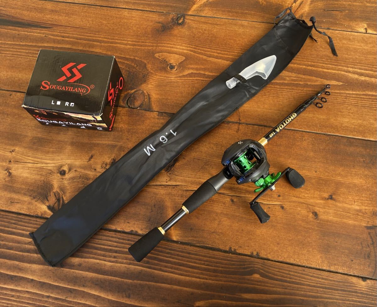 釣り竿セットです。ロッドはバス釣り初心者の方でも扱いやすいレングスかと思います。ネコリグやスモラバ、ヘビーダウンショット等バーサタイルに使えると思います。バス釣りのみならずトラウトやサビキ釣り、ちょい釣り、投げ釣り等ライトゲーム全般で使用できます! 仕舞寸法45cmとバイクや電車で釣りに行く際もリュック等に仕舞えて携帯性バツグンです。