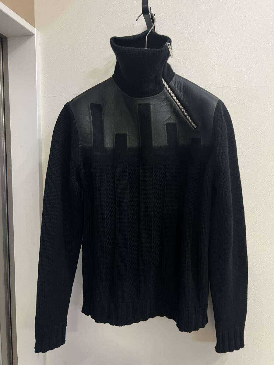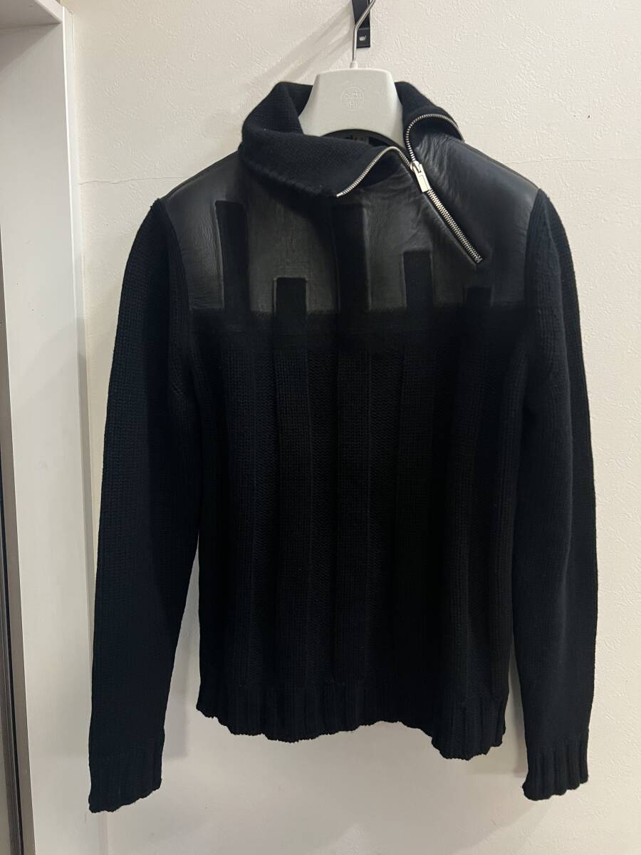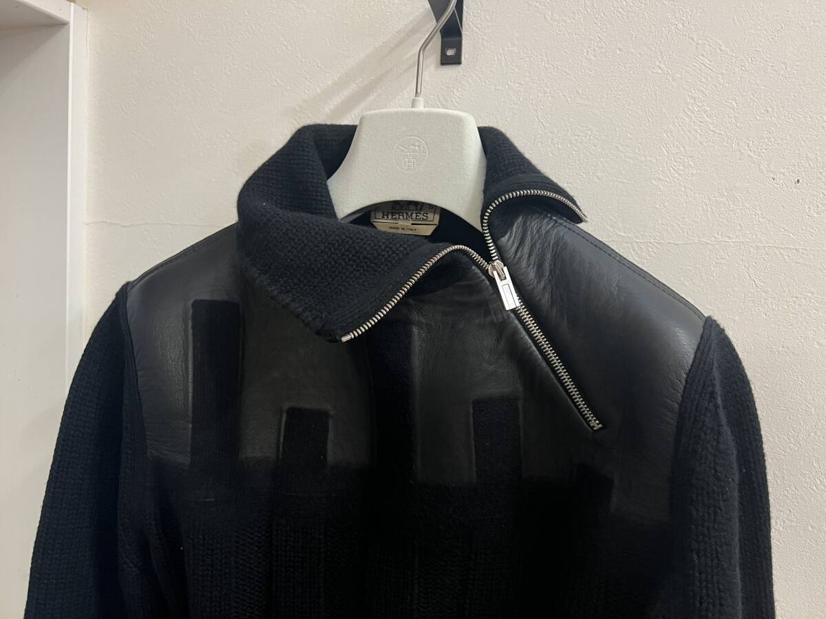 エルメス コレクションLOOK カシミア × ラムレザー ファントムテクニック ハイネック ZIP ニット セーター 超稀少XS(M-L程度)定価55万円