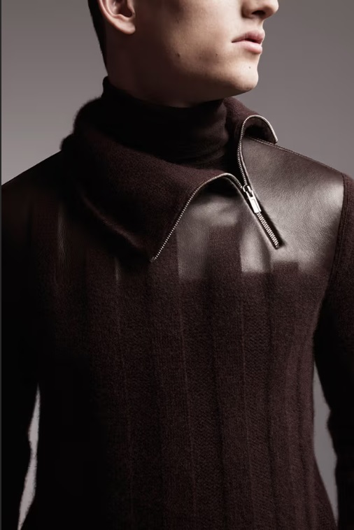 エルメス  コレクションLOOK  カシミア × ラムレザー ファントムテクニック ハイネック ZIP ニット