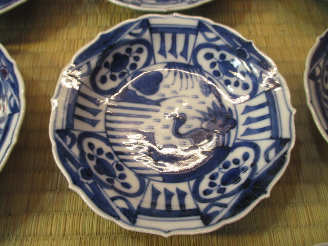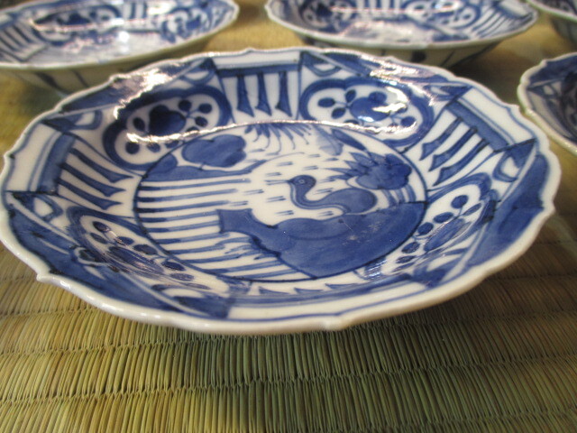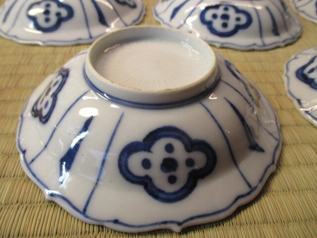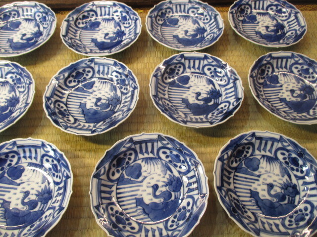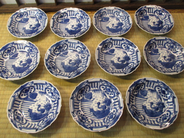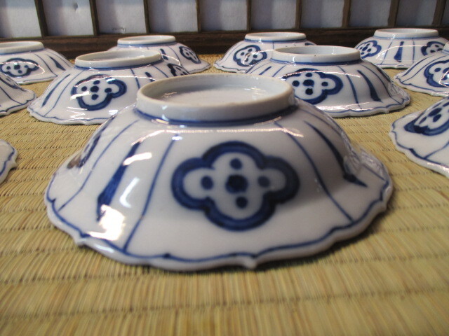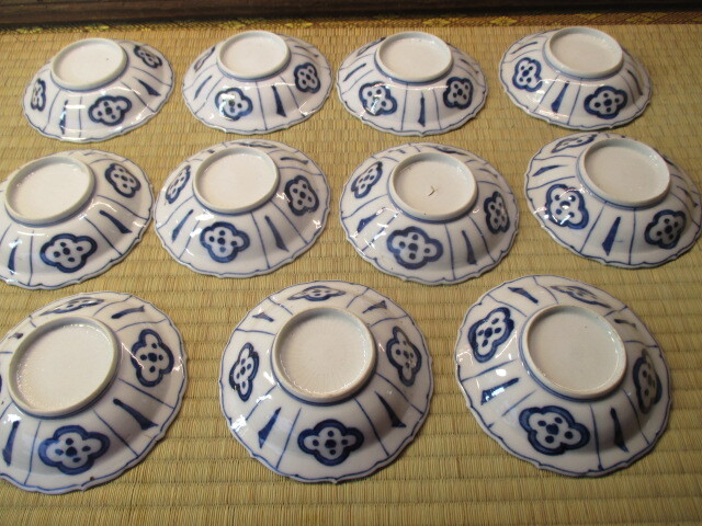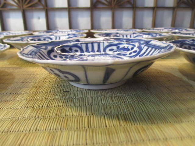 《和》古伊万里 染付小皿 輪花縁 芙蓉手 向付け11客 会席 お店使い