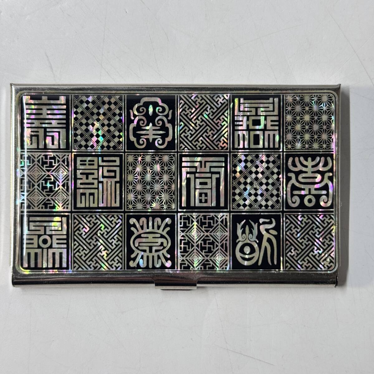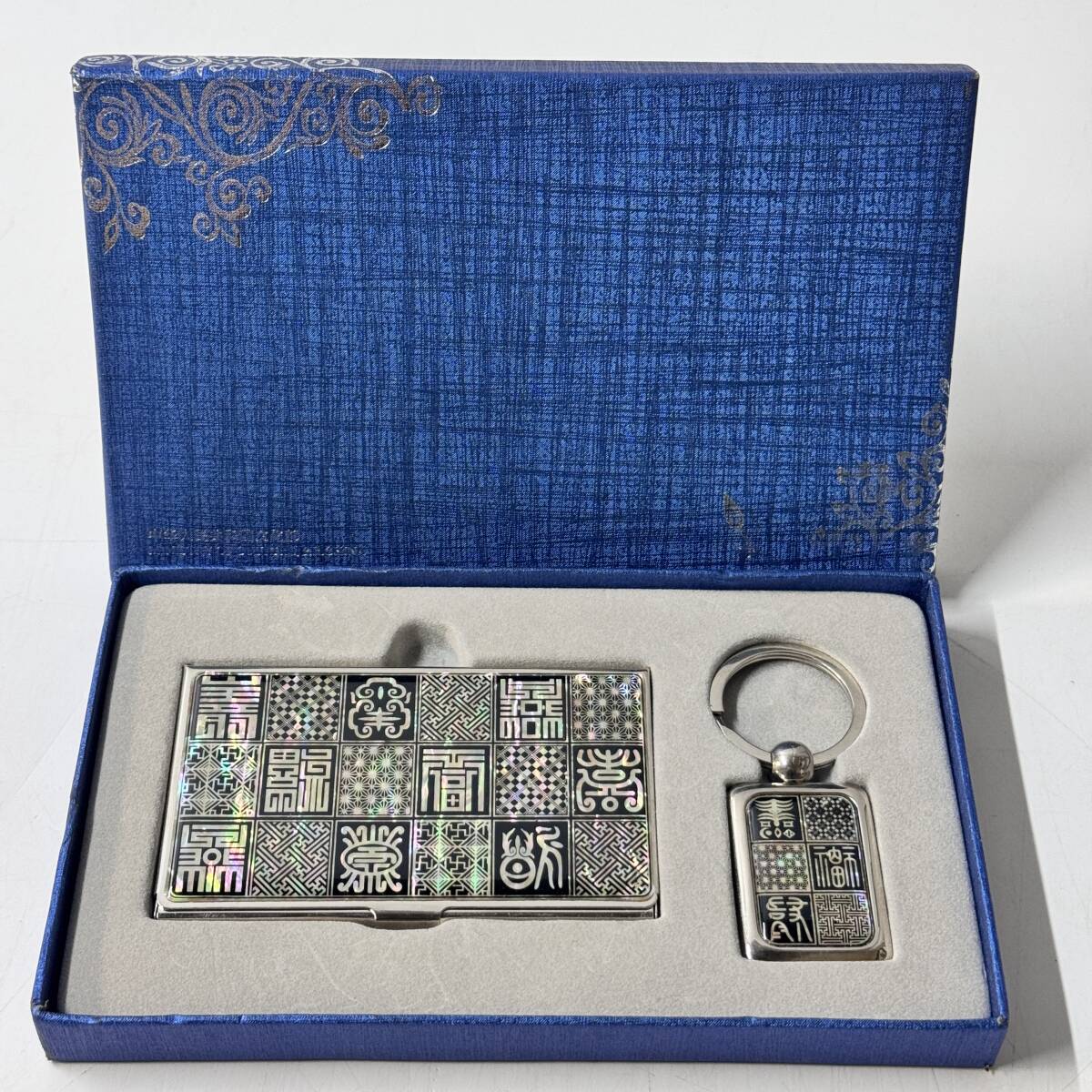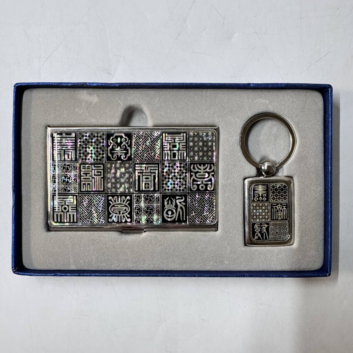【64183Q】未使用 高麗螺鈿 螺鈿細工 名刺ケース キーホルダー 祥瑞文 韓国雑貨 YeoKong ハングル 経年保管品 現状品