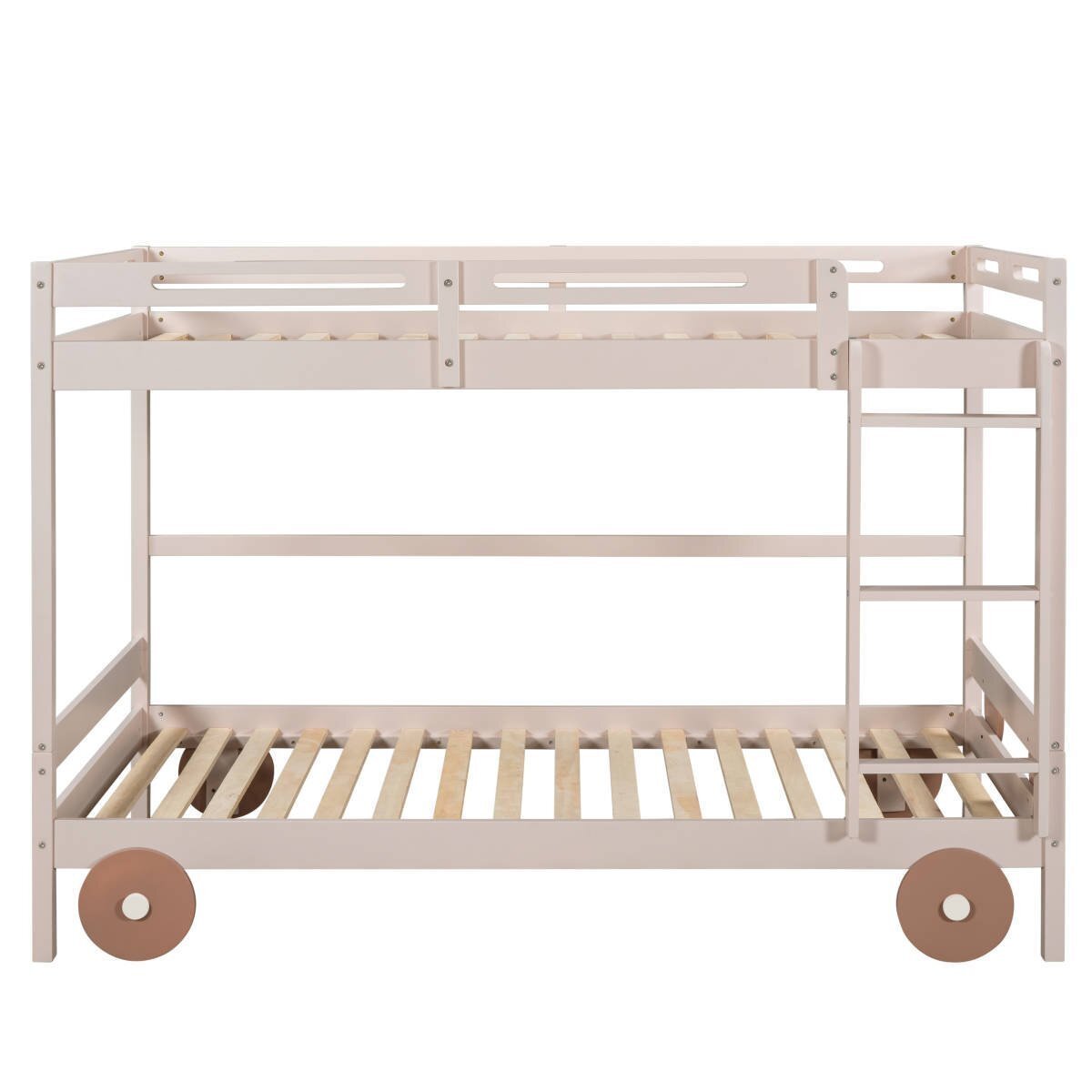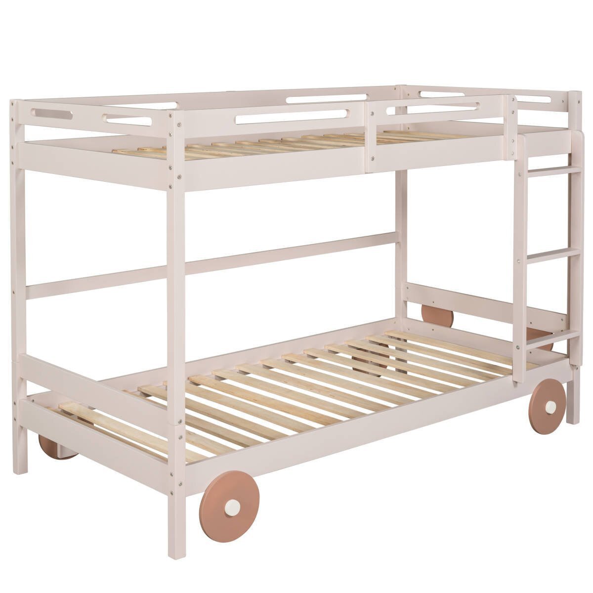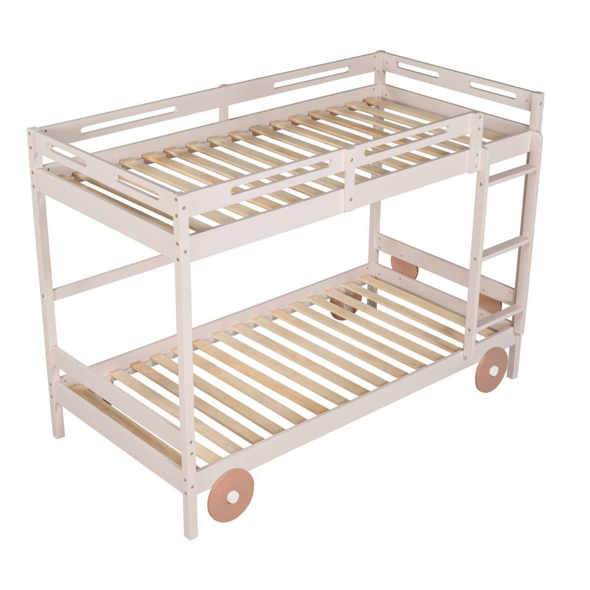 ☆二段ベッド 可愛らしい車のデザイン 子供/大人用 ベッド ロータイプ すのこ 木製ベッド パイン材 社員寮 学生寮