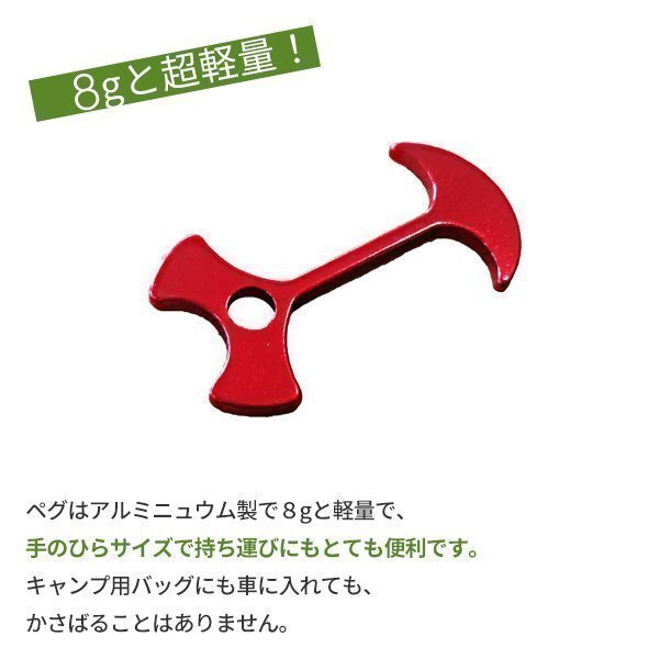 ★ペグ アンカー型 10個セット 軽量 8g 小型 ペグさし ポーチ付き アウトドアキャンプ テント 張り 留め具 バックル