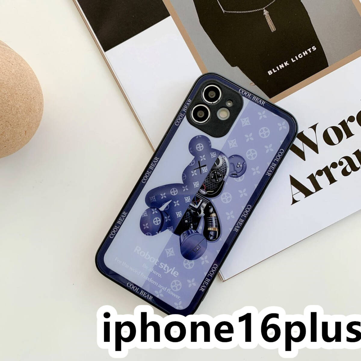 iphone16plusケース カーバー TPU 可愛い 熊 ガラス お洒落 軽量 ケース 耐衝撃高品質ブルー