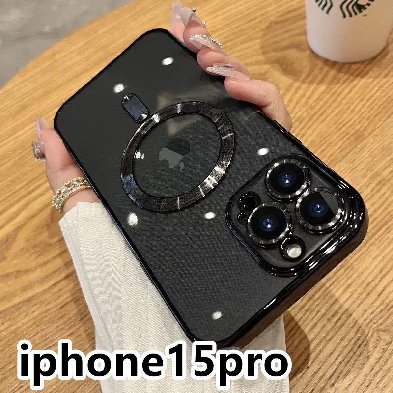 iphone15proケース TPU お洒落 軽量 ケース 耐衝撃 無線 磁気 ワイヤレス充電 ブラックのみ
