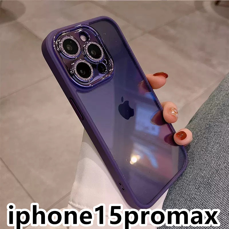 iphone15promaxケース カーバー レンズ保護付き 透明 お洒落 韓国 軽量 ケース 耐衝撃 高品質 紫