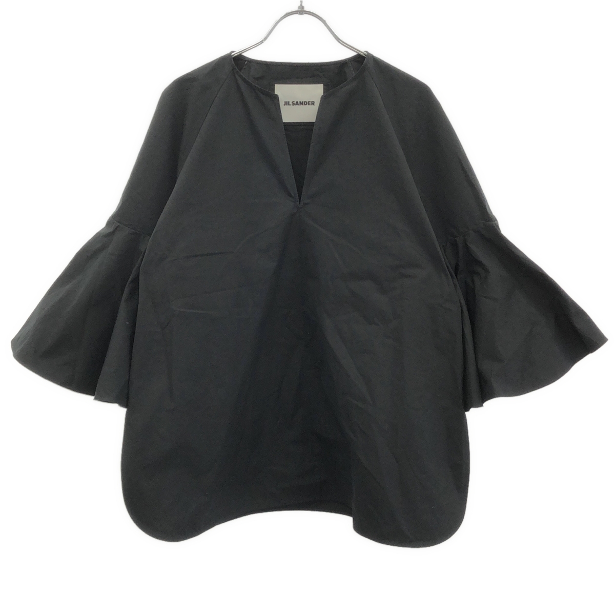 JIL SANDER ジルサンダー 21SS キーネックフリルスリーブシャツブラウス HSJWNS0022 ブラック 32 ITI7UMHA9LQI