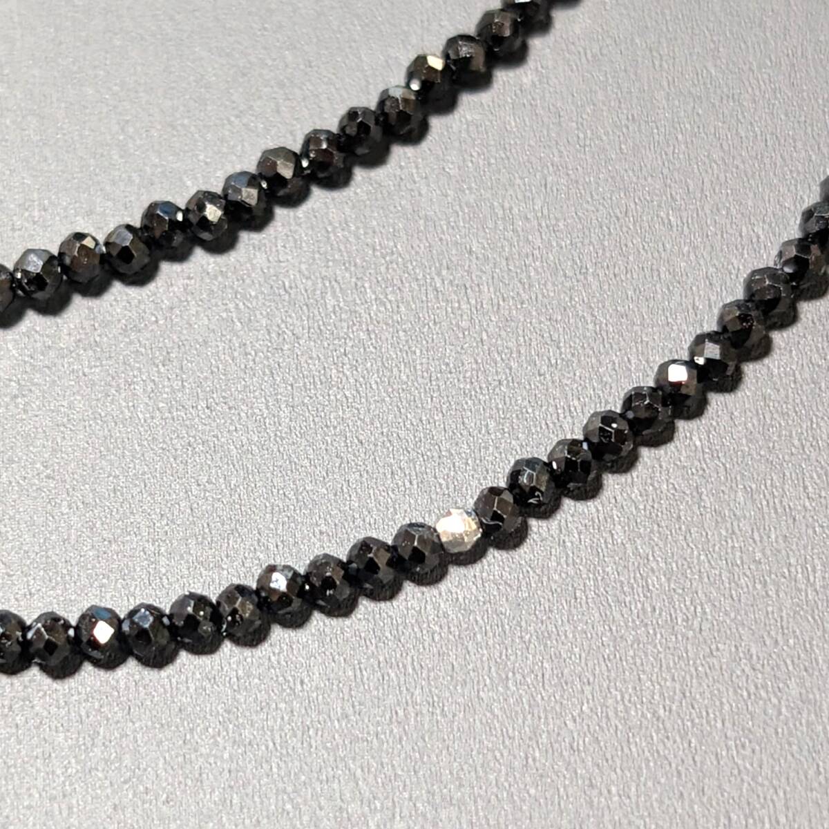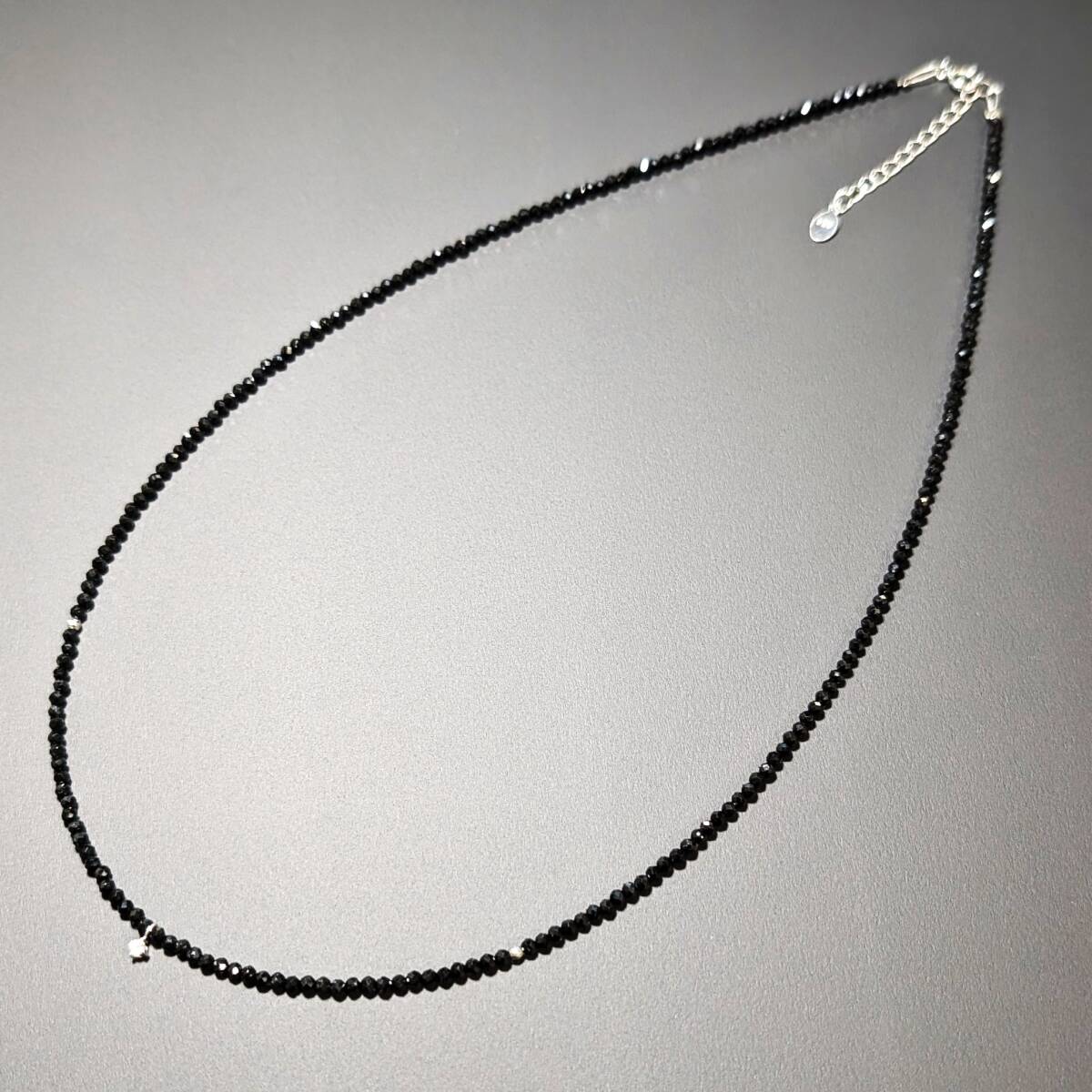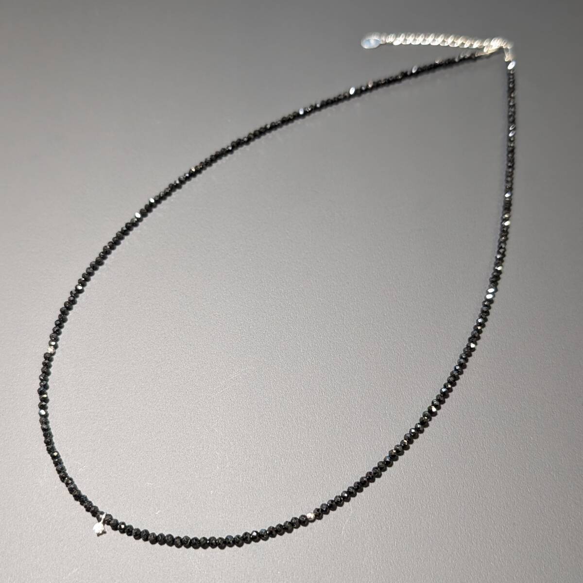 ☆0.03ctのダイヤが入った、K18WG/ホワイトゴールドペンダント、トライアングルカットビーズとブラックスピネルを組み合わせて製作した、高級パワーストーンネックレス!!