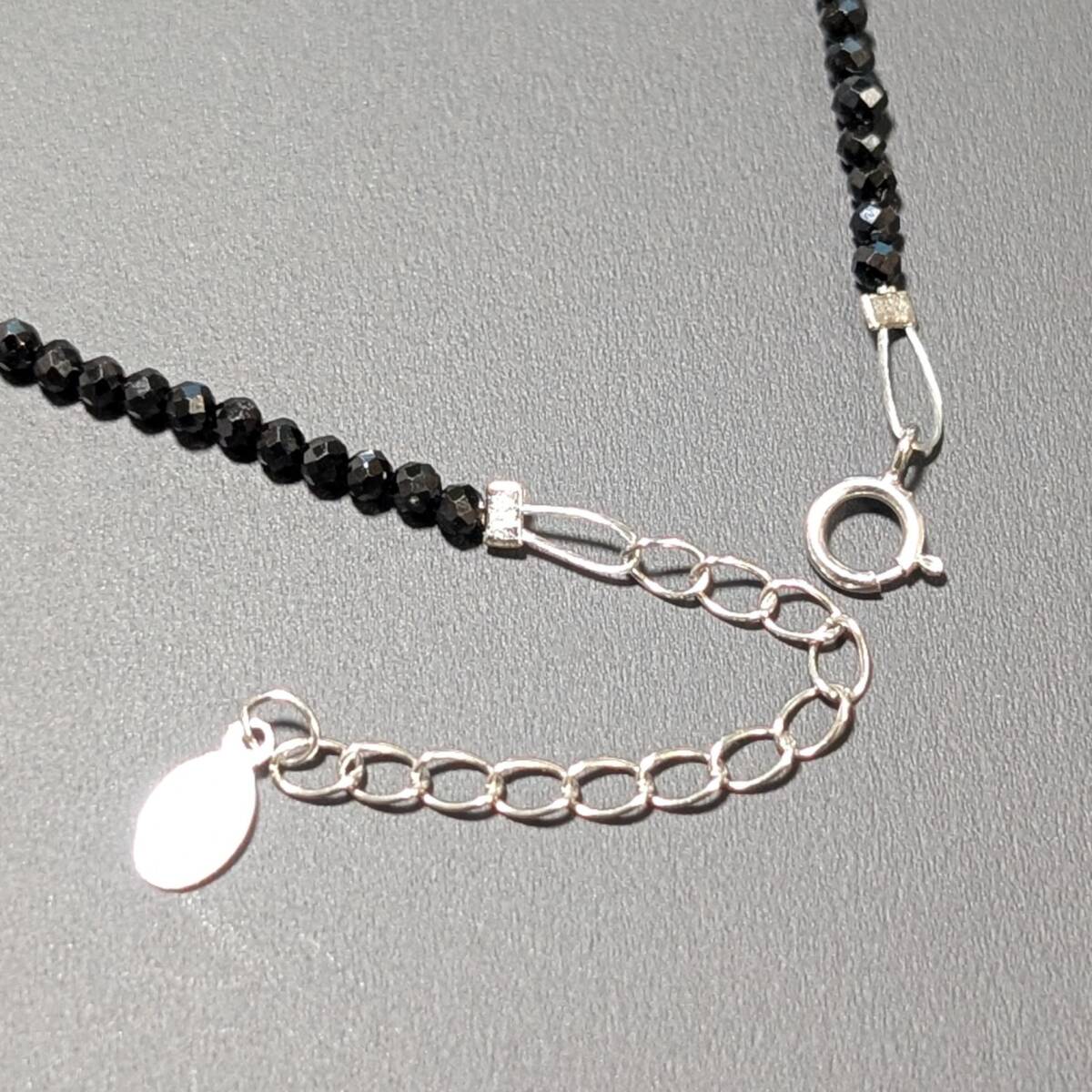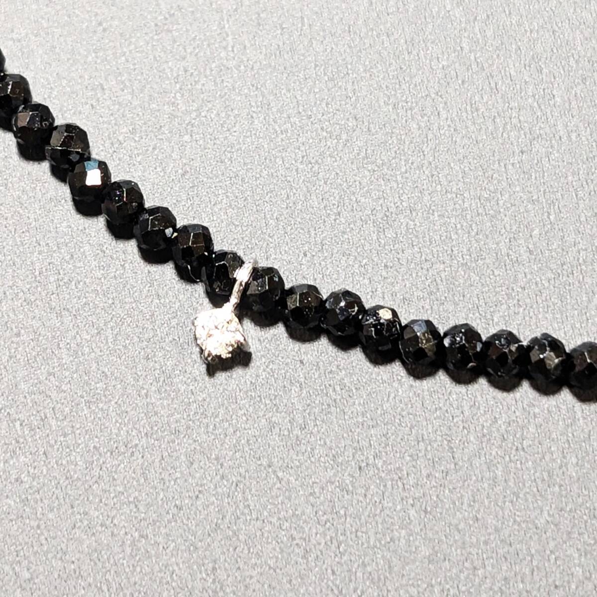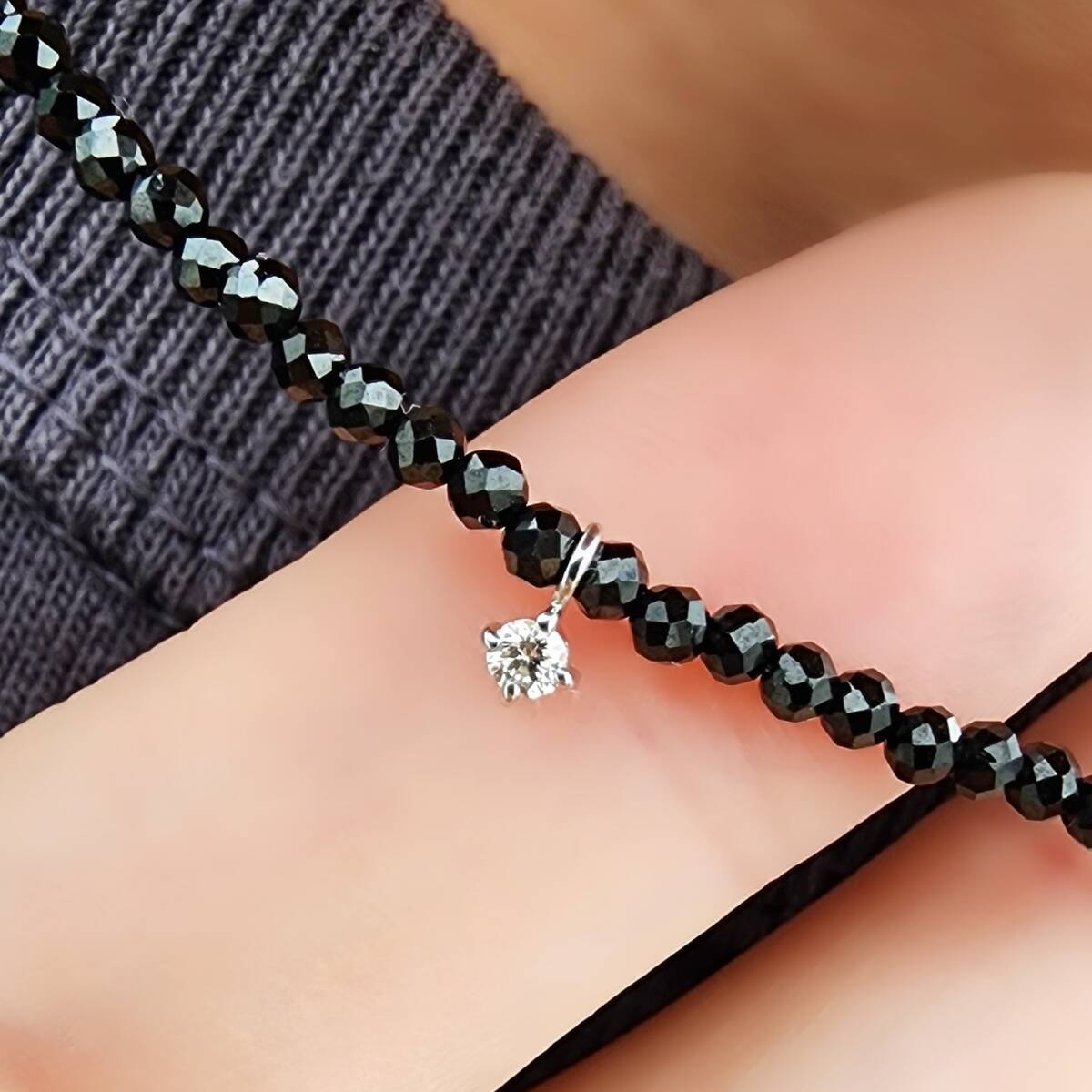 ☆0.03ctのダイヤが入った、K18WG/ホワイトゴールドペンダント、トライアングルカットビーズとブラックスピネルを組み合わせて製作した、高級パワーストーンネックレス!!