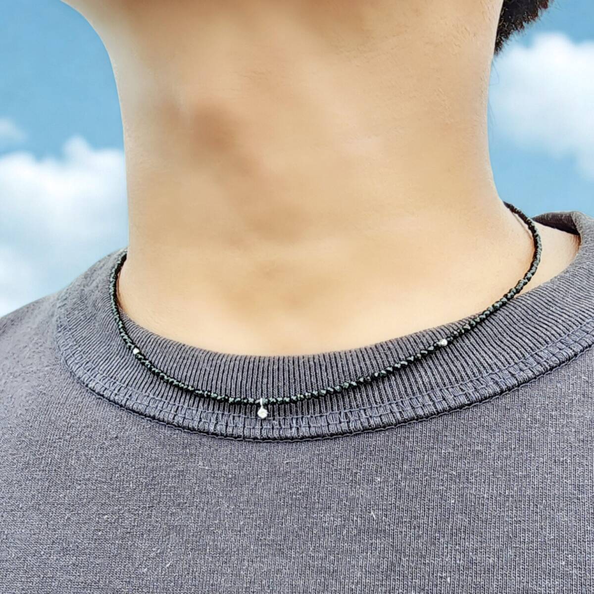 小粒2mmのダイヤモンドがキラキラと首元で輝くことで、自分だけの特別なジュエリーを身に纏うことができます。ダイヤモンドだけでなく、トライアングルカットされたK18WGビーズやブラックスピネルの輝きからも、目が離せませんよ><