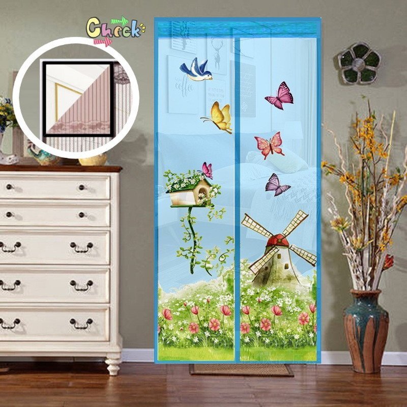自動開閉☆どこでも設置OK!網戸カーテン 100cm×210cm マグネット 蚊 害虫 マジックテープ 目隠し 虫よけ ネット I-040