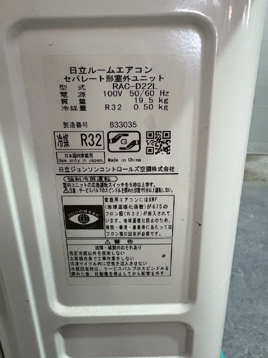 ヤフオク商品 問い合わせ wisest66@outlook.jp ![]() ♪ご覧頂きまして誠にありがとうございます♪ 安心したお取引をさせて頂くため 落札者様へ商品が到着する最後まで 迅速な対応を心掛けて対応させて頂きます。 ※必ず最後までご覧になりましてからご入札下さい※ ※必ずご確認ください。 店頭受け取りにお越しになる際は、必ず事前に引き取り日時のご連絡をお願い致します。 【お渡し対応可能時間】 月/火/木/金:9:00~16:00 日曜・祝日:9:00~10:00又は17:00~18:00 また、基本予約制でのご対応となりますので取引メッセージもしくは、 お電話にてご予約くださいますようお願い申し上げます。 ご予約が無いお客様およびお引き渡し時間外でのご対応は出来かねます。 必ず事前にご予約をお願い致します。 -------------------------------------- ※当商品は店頭受け取り可能な商品でございます※ 店頭受取をご希望のお客様のみ 落札後、ご購入手続き時にお支払い方法を変更するページ内で 【店頭受取】をご選択ください。 【倉庫場所】神奈川県横浜市旭区金が谷610-1 -------------------------------------- 【メーカー】 HITACHI 日立 【型番】 RAS-D22L 【年式】 2021年製 【商品カテゴリ】 2084213162 【管理番号】7J 【梱包サイズ】らくらく家財便A+Bランク ※送料は下記に表がございます。そちらからご確認お願い致します。 ※一部配送不可のエリアがございますのでお住まいの地域を事前にご確認ください。 らくらく家財便について。 【商品状態】Bランク 《ランク表記》 N=新品、あるいは未使用品 S=新品同様で、使用感もあまりなく極めて美品 A=多少のキズ、使用感はあるが状態良好 B=全体的にキズや使用感がある C=全体的にキズや長年の使用感がある D=ジャンク品 ※ランクは当社独自の査定に基づいております (他社との比較はご遠慮願います) -------------------------------------- ◇商品詳細◇ ◇仕様◇ ・室内機・室外機の両方に「凍結洗浄」を搭載し、クリーン機能が充実したベーシックモデルのエアコン「Dシリーズ」(2021年モデル)(おもに6畳用)。 ・「ステンレス・クリーン」を採用し、汚れにくいステンレスでエアコン内部の風の通り道を清潔に保つ。扇風機のように使える「風だけ」運転が可能。 ・冷房シーズン前に内部をしっかり自動で掃除し、自動で故障部分を診断する「プレシーズンお手入れ」を搭載。「みはっておやすみ」タイマー付き。 ・詳しい仕様につきましては以下のURLをご確認ください。 https://kakaku.com/item/K0001342842/spec/#tab ◇状態◇ ・取り外すまで正常に動作しておりました。動作確認済み。 ・ポンプダウン作業実施済み。 ・落し切れない傷や汚れがあり、内機に目立つ傷がございます。 -------------------------------------- ◇その他◇ ・画像にある物が全ての発送物となります。付属品は画像に写っている物がすべてとなりますので予めご確認ください。 ・画像にある物が実際の出品物となります。 ・細かい商品の状態につきましては画像にてご確認頂き、ご理解の上ご検討下さい。 ・画像に写りきらない小傷等がある場合がございます。予めご了承ください。 ・撮影時に簡易清掃を行っておりますが、取り切れていない汚れや保管時の汚れにつきましては、落札者様にて再度清掃をお願い致します。 ◇保証対象商品について◇ ・ジャンク品以外の商品のみ保証対象となります。 ・ジャンク品【Dランク】の表記の場合、動作確認をした物でも保障はできませんので ノークレーム、ノーリターンでご理解がある方のみお願いいたします。 ※なお当商品は中古リサイクル商品の為、 掲載前にジャンク品以外の場合の商品の検品を行い品質については万全を期しておりますが、 万一商品に破損や商品説明に記載のない欠品・動作不良等の不具合がございました場合には、 到着より7日以内にご連絡ください。 ・商品到着後、8日以上経過後した場合、対応いたしかねますので宜しくお願い致します。 ・新規/悪い評価の多い入札者様はいたずら入札防止の為 入札を取消させて頂く事がございますので予めご了承下さい。 |