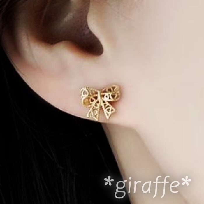 B603 匿名配送 ピアス レディース リボン ゴールド s925 ハート スタッドピアス