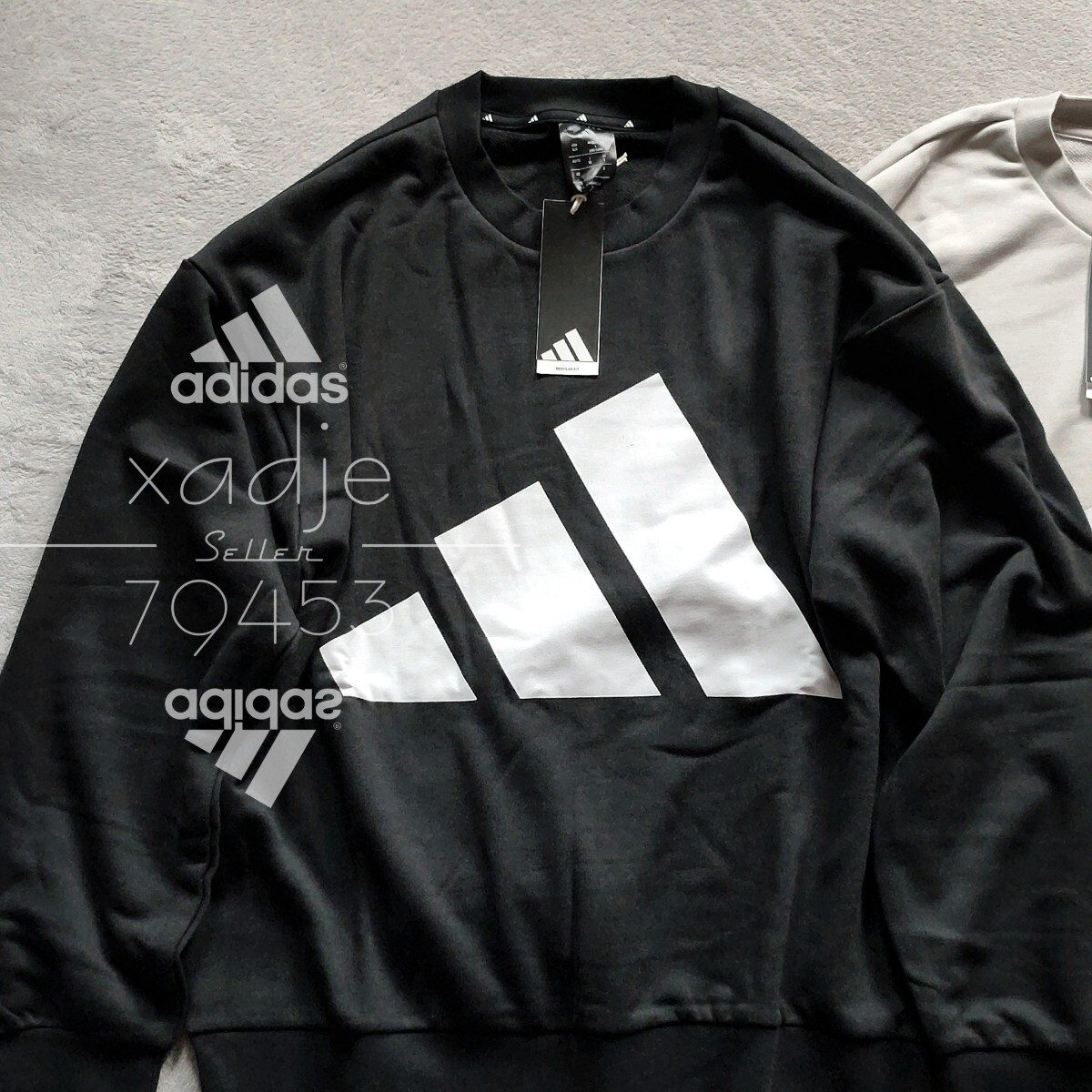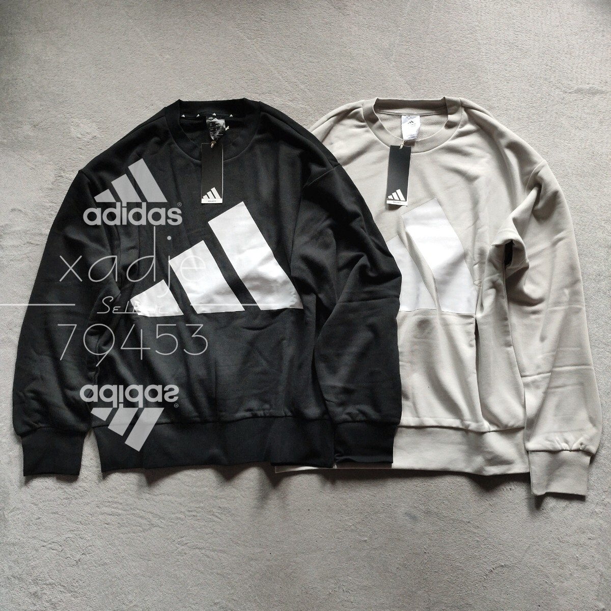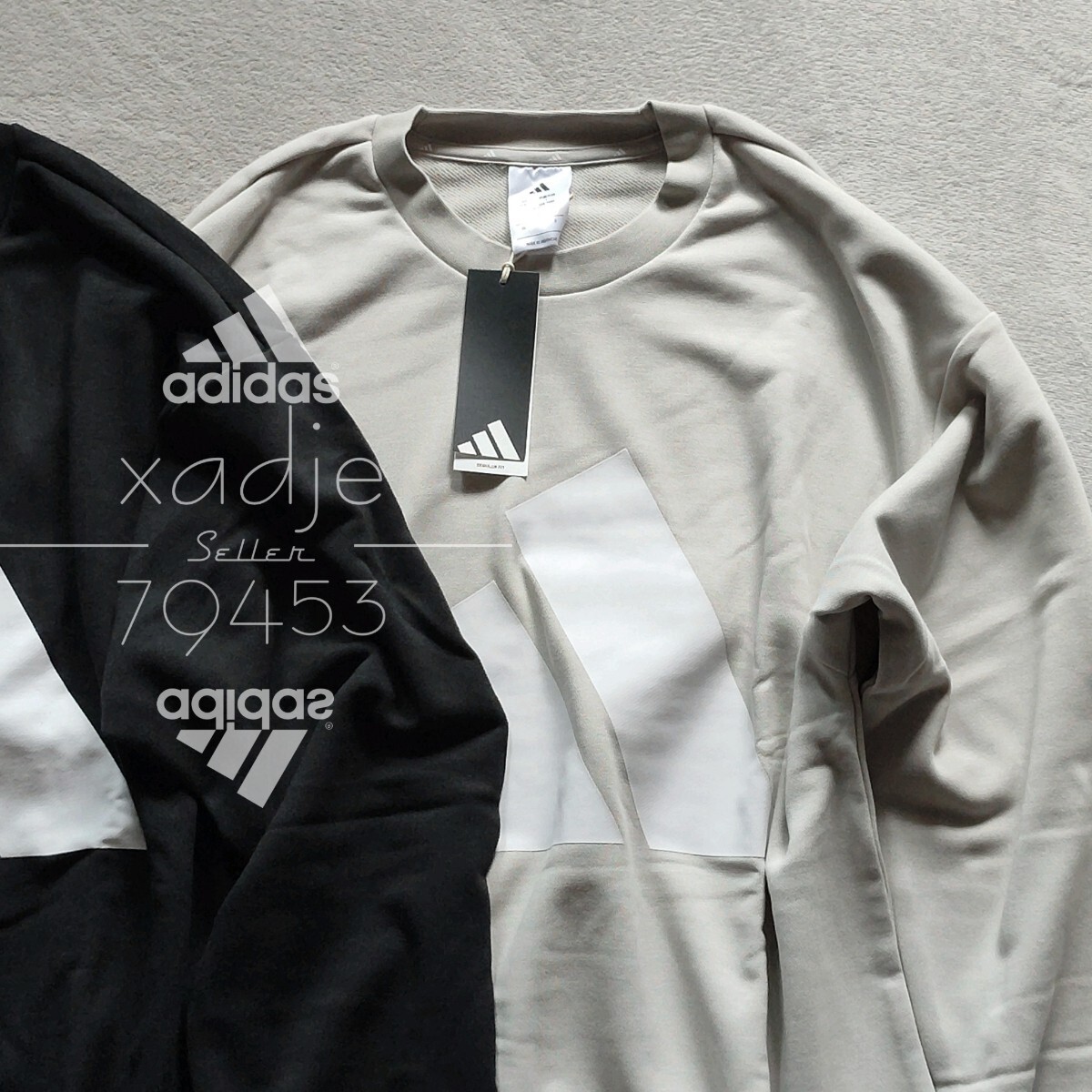 新品 正規品 adidas アディダス 2枚セット 長袖 ビッグロゴ プリント スウェット トレーナー 黒 ブラック ベージュ系 定価13200円 2XL