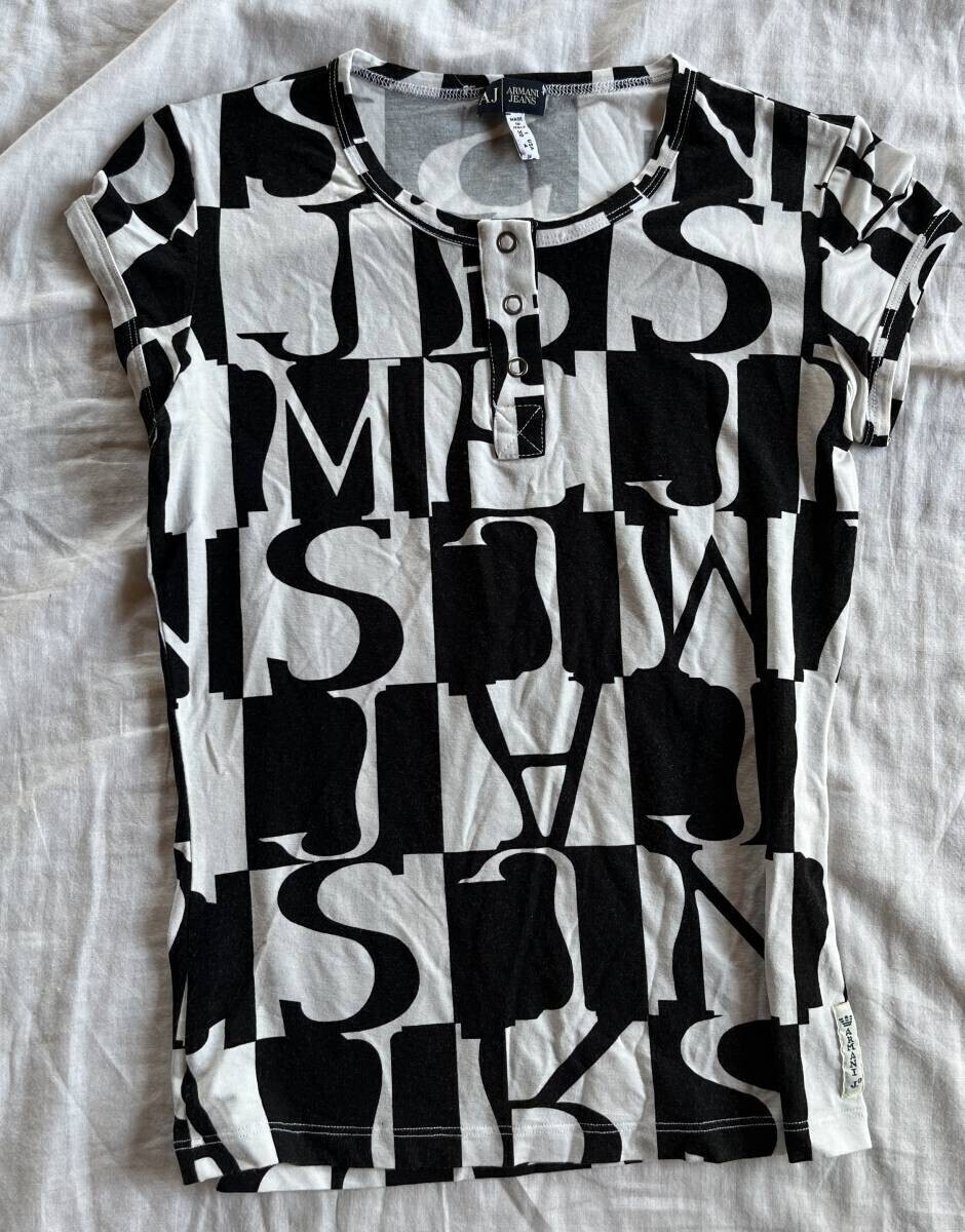 ARMANI JEANS アルマーニジーンズ フレンチスリーブカットソー Tシャツ モノクロ 定番