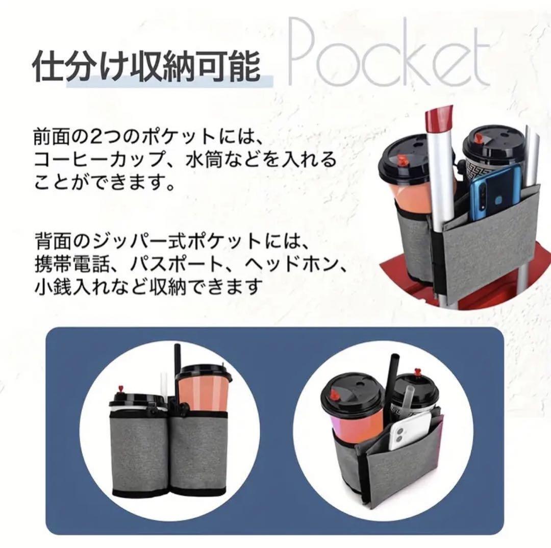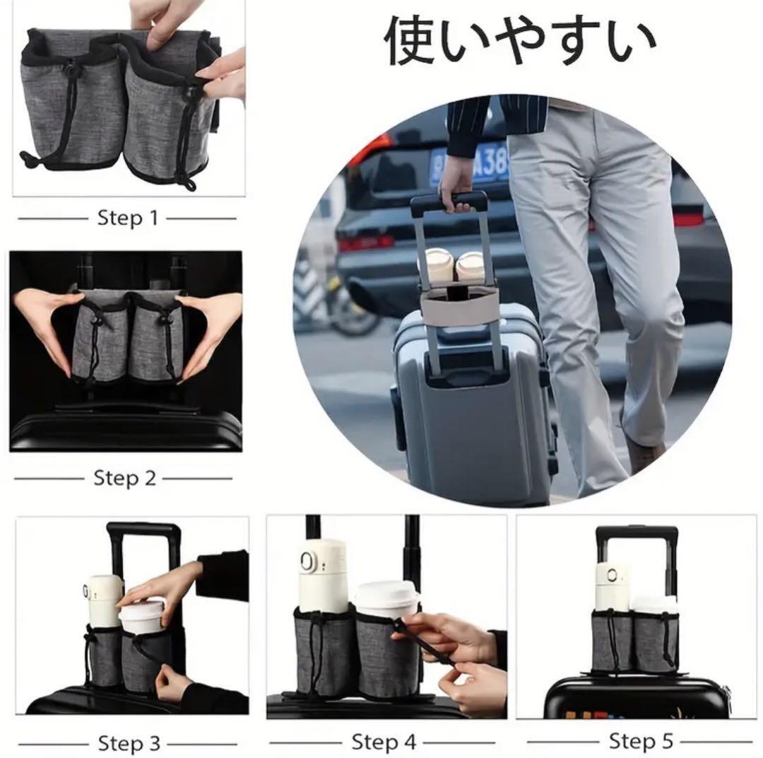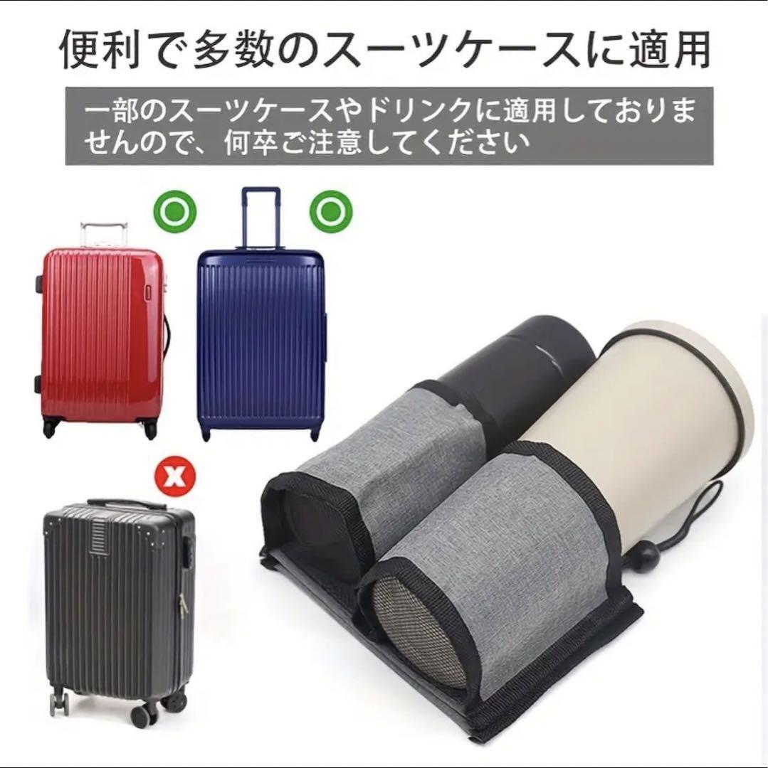 旅行中のカップやボトルを簡単に固定できる調節可能なベルトです。