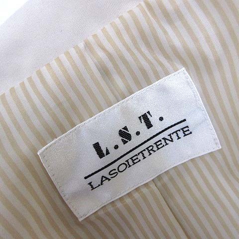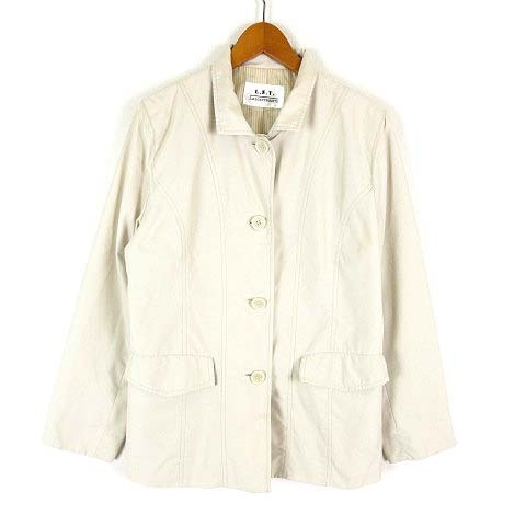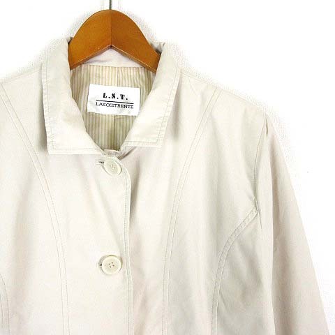 L.S.T LASOIETRENTE ジャケット ステンカラー 裏ストライプ柄 長袖 L オフ白 アイボリー レディース