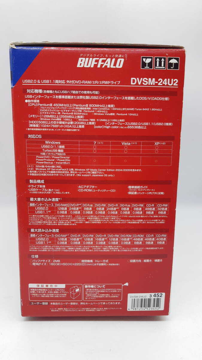 BUFFALO バッファロー 外付けDVDドライブ DVSM-24U2 通電稼働確認OK ■1783