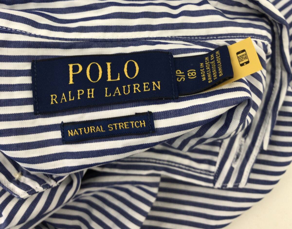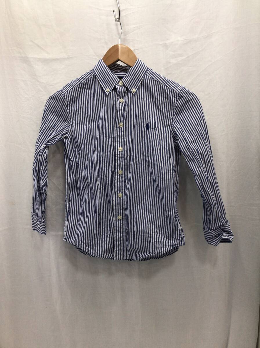 POLO RALPH LAUREN 長袖 シャツ ブルー ホワイト ストライプ サイズ 8 キッズ 子ども 男の子 ポロ ラルフローレン G3