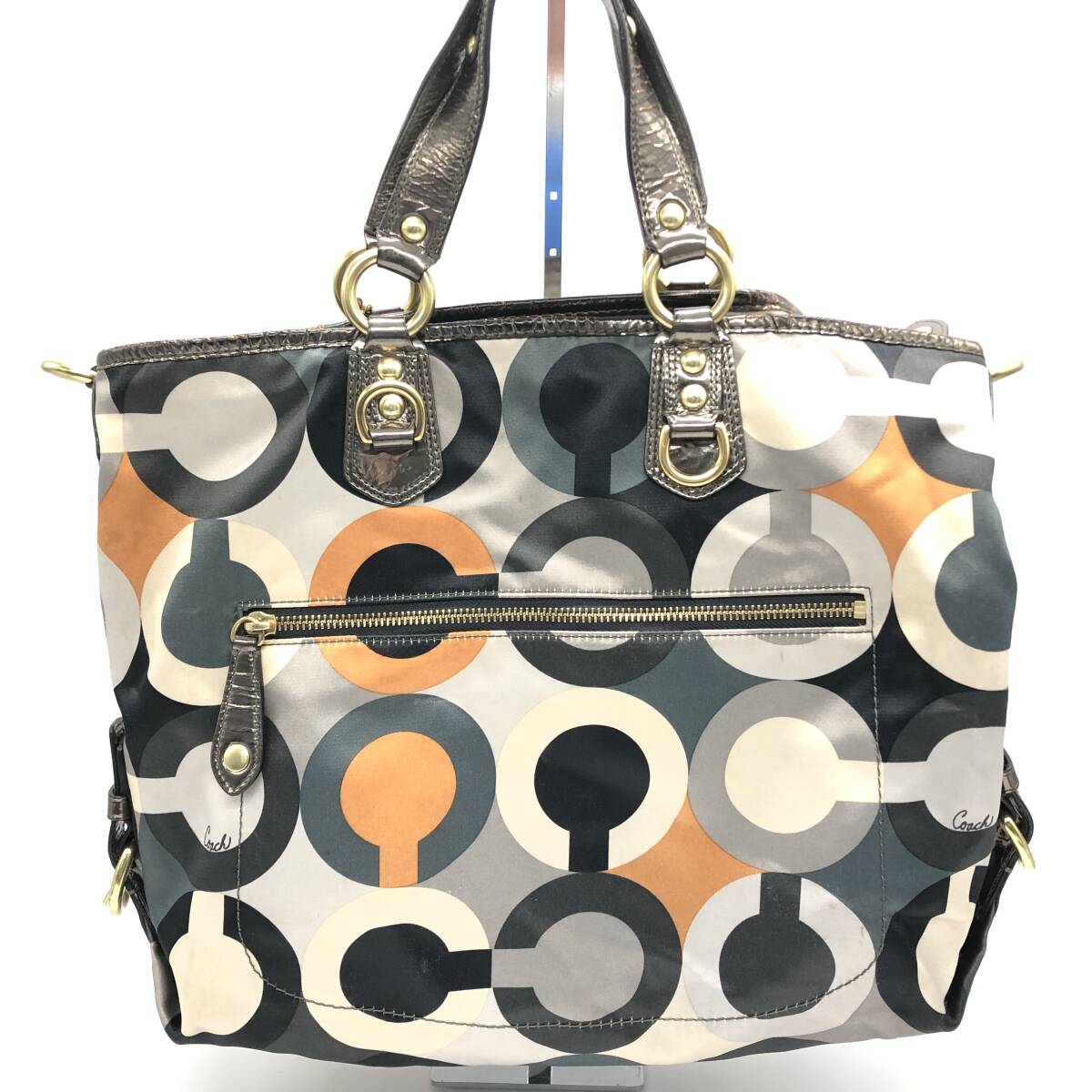 | 保管品 COACH コーチ オプアート トートバッグ ハンドバッグ ショルダーバッグ 肩掛け バッグ ブルー系 12960 | ||
