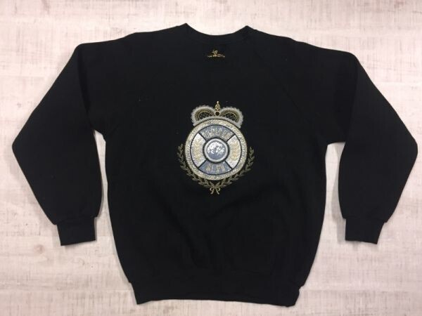 LILY en GISH レトロ オールド ストリート スポーツ クラウン エンブレム刺繍 スウェットトレーナー プルオーバー メンズ ラグラン袖 黒 です。