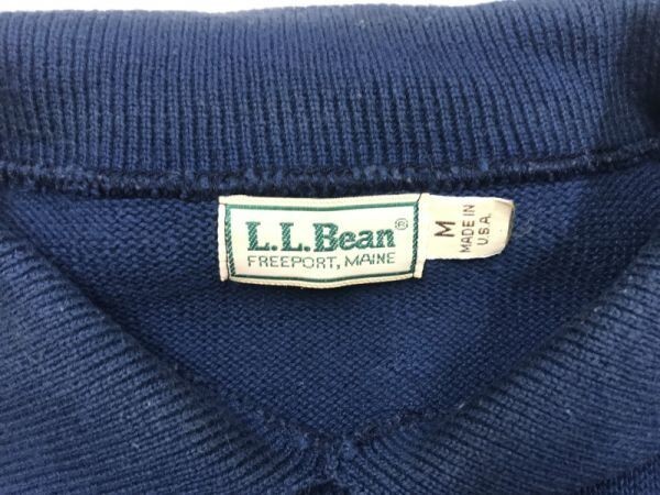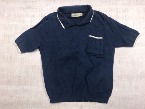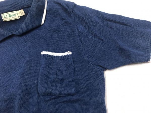 USA製 エルエルビーン L.L.Bean オールド アメカジ アウトドア マリン 古着 胸ポケット コットンニット半袖シャツ レディース 綿100% M 紺 です。