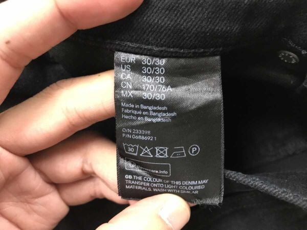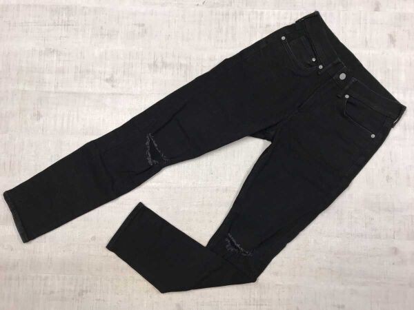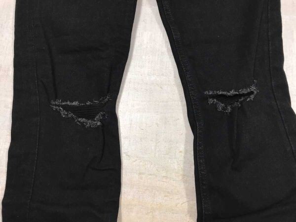 エイチアンドエム H&M &DENIM ストリート グランジ 紙パッチ 膝 ダメージ加工 テーパード ブラック デニム パンツ ジーンズ メンズ 30 黒です。
