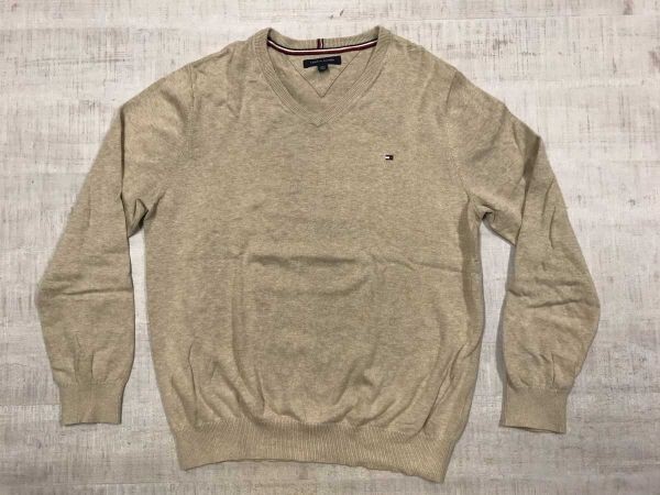 トミーヒルフィガー TOMMY HILFIGER アメカジ トラッド 長袖 コットンニット セーター トップス メンズ 綿100% 大きいサイズ XL ベージュ です。