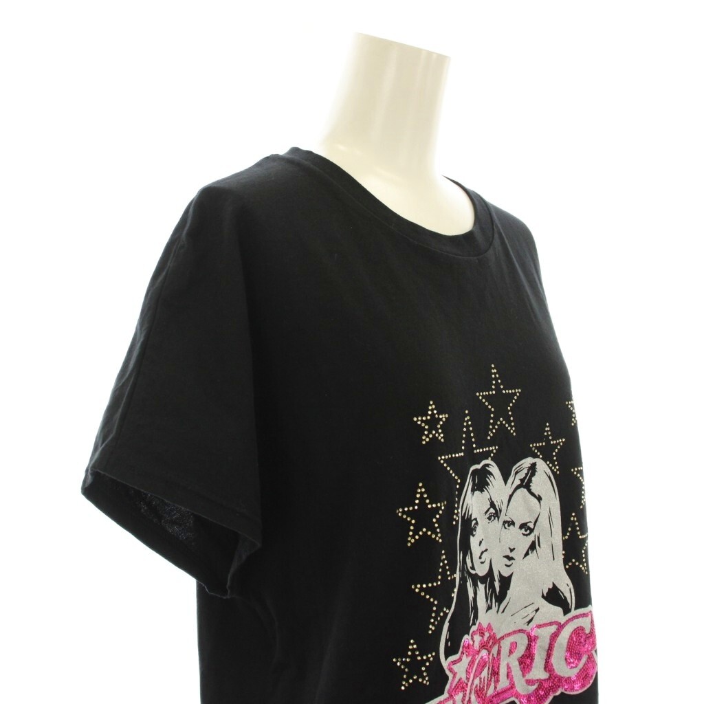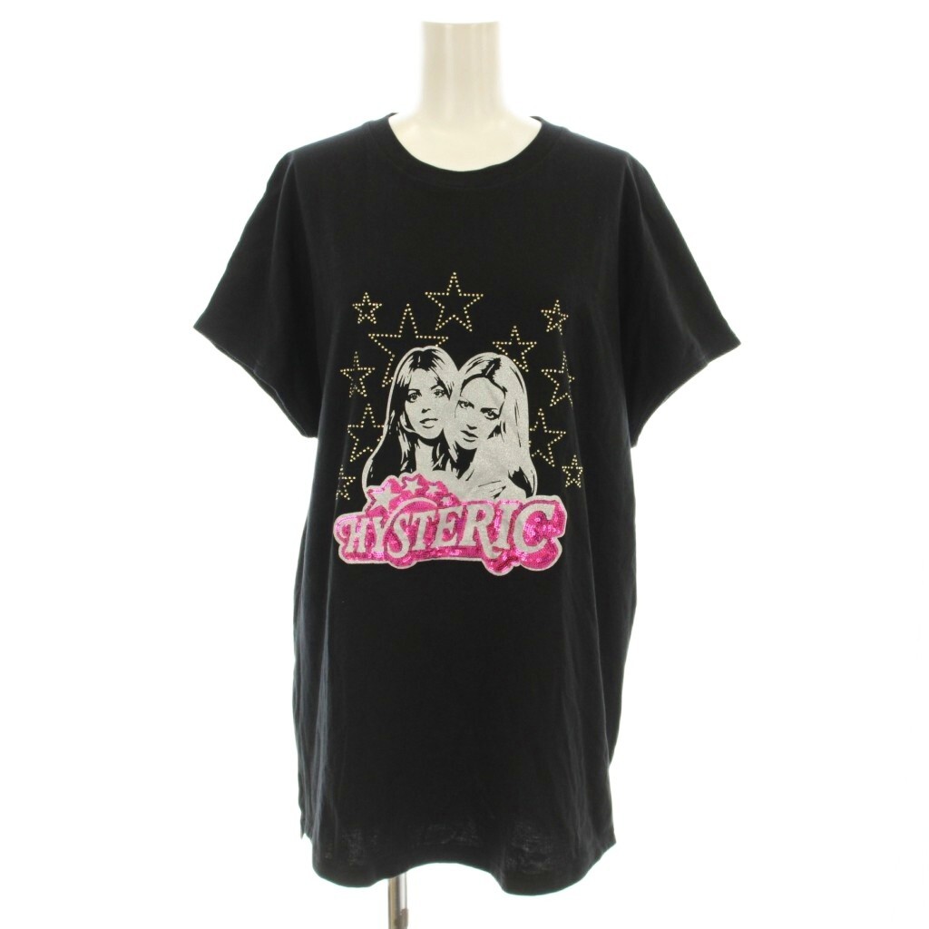 ヒステリックグラマー WOMAN STARS刺繍 Tシャツ カットソー 半袖 ラインストーン スパンコール装飾 F 黒 ブラック 01232CT03