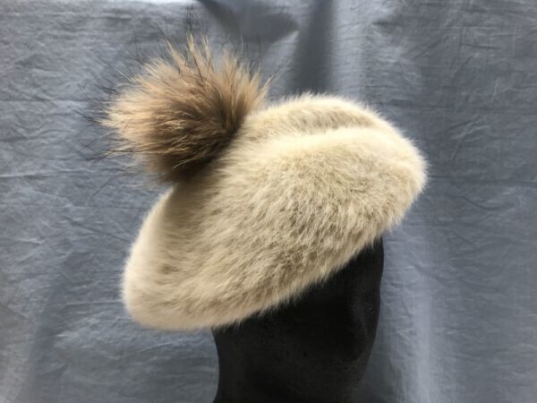 milsa ミルサ レトロ モード トラッド シャギー モヘア ニット ベレー帽 帽子 レディース ポンポン付き 57.5cm ベージュ