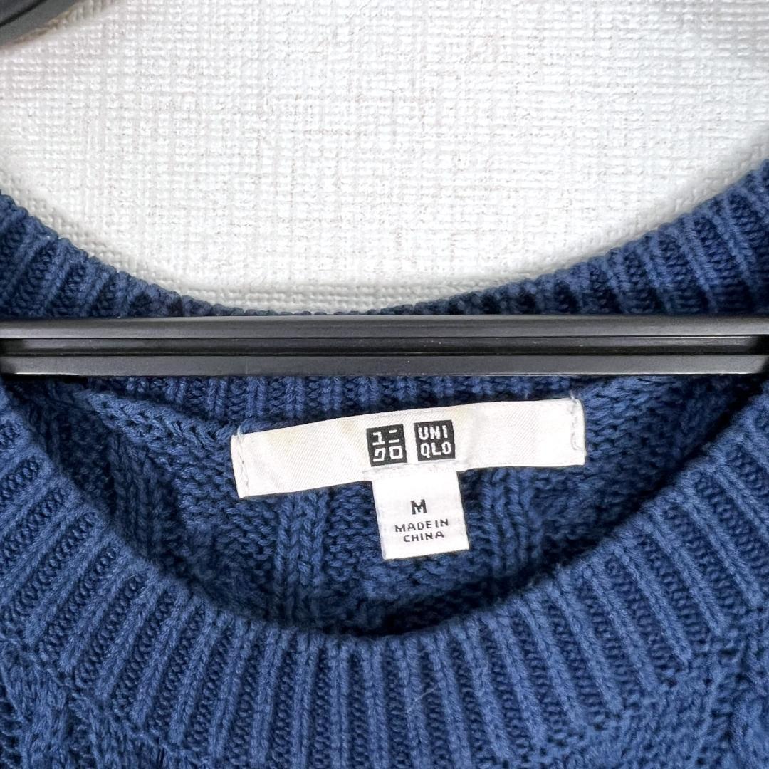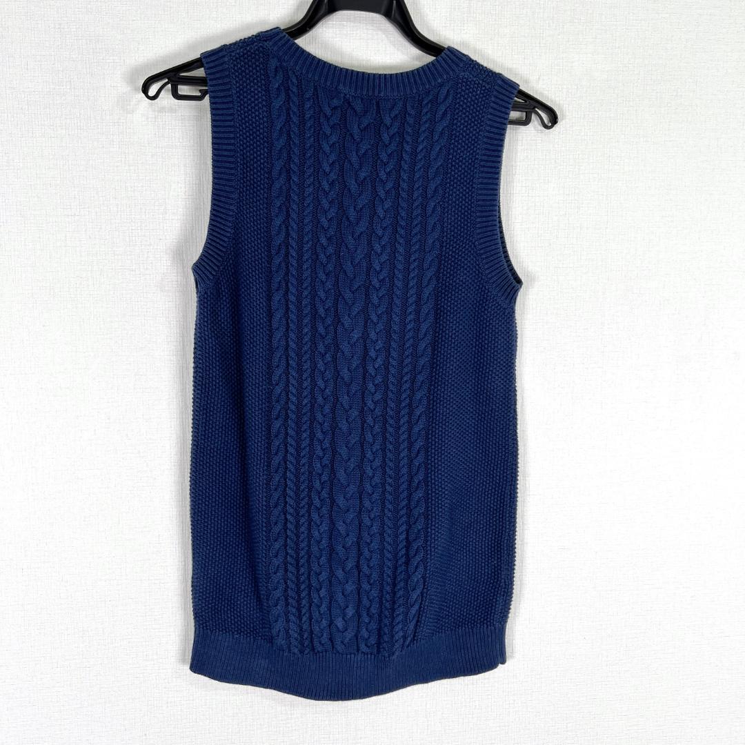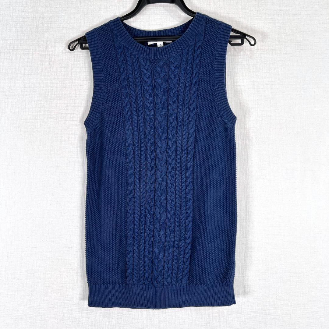 【UNIQLO】ユニクロ ネイビー コットン 綿ニット ベスト 袖なし ノースリーブ セーター トップス 女性用 レディース Mサイズ【a027】