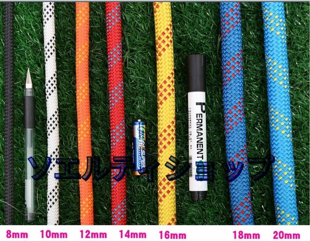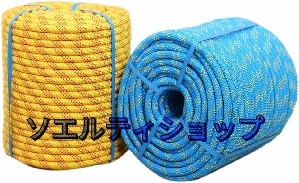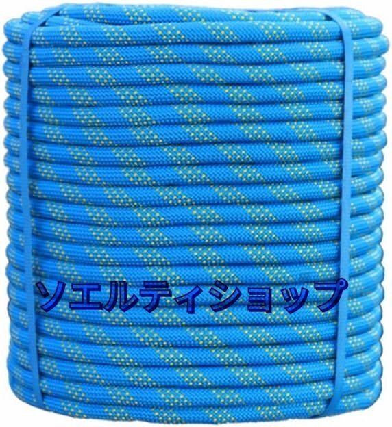 多機能ナイロンロープ 14mmブルークライミングロープ、ロッククライミングロープ、ダブルカラビナ、安全エスケープロープ、キャンプ、 50M