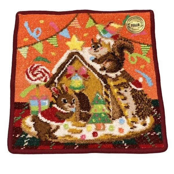 フェイラー FEILER - コットン オレンジ×ブラウン×マルチ ハンドタオル/リトルクリスマスパーティー/リス/ラメ/タオルハンカチ 新品同様