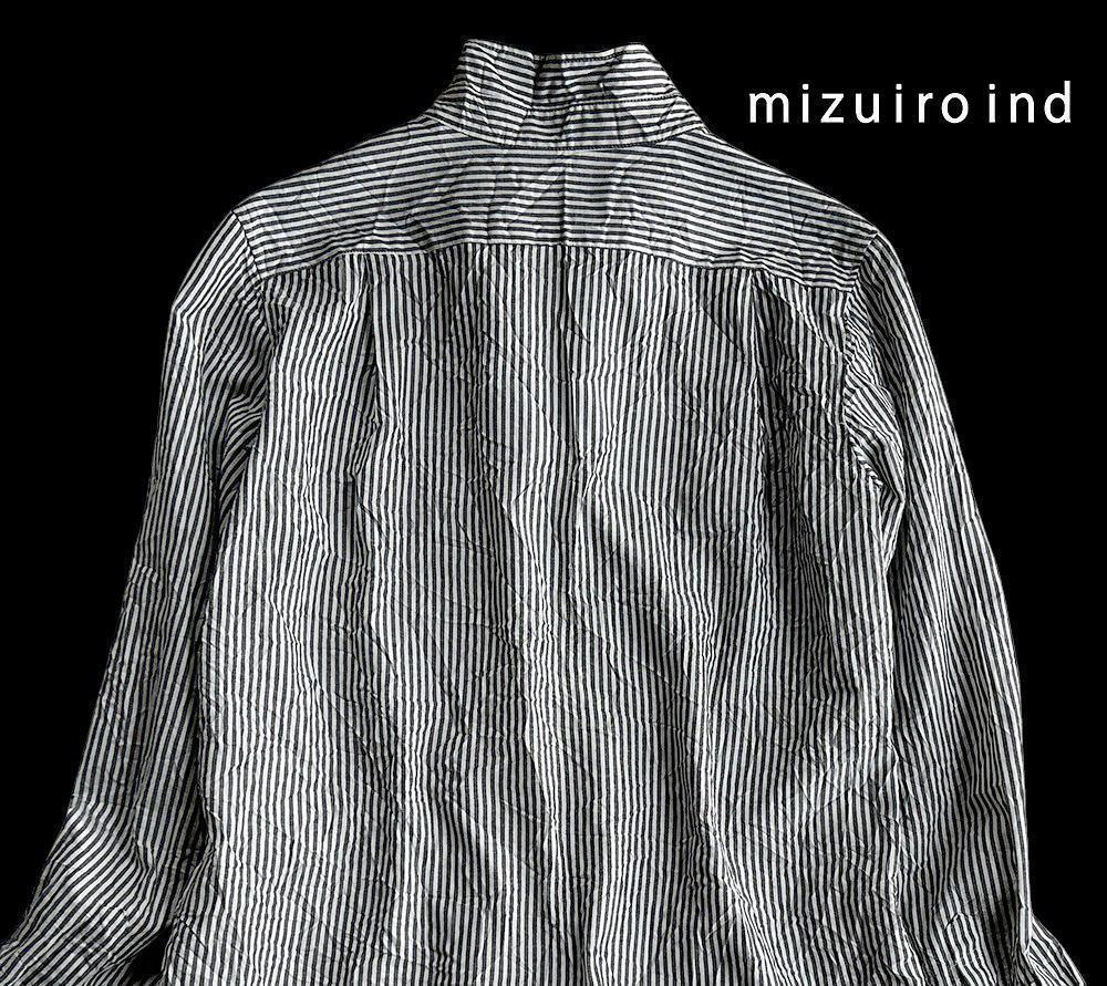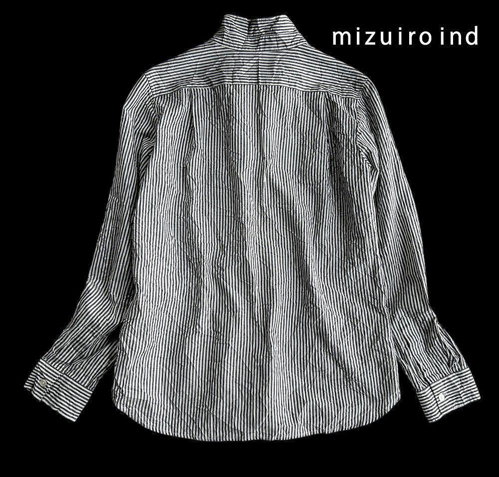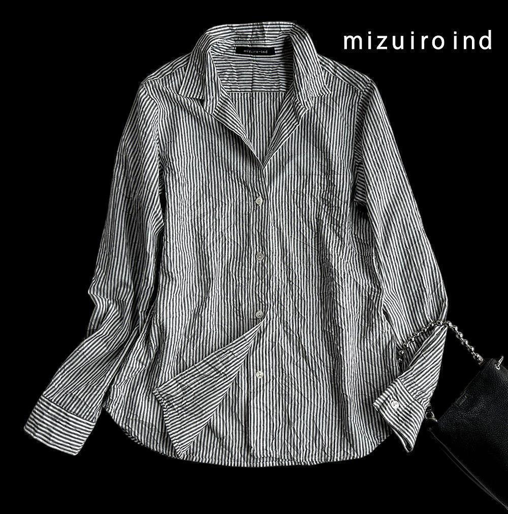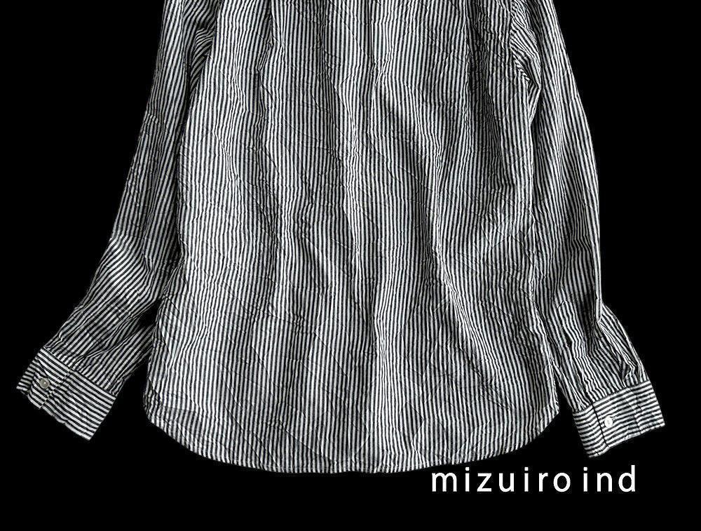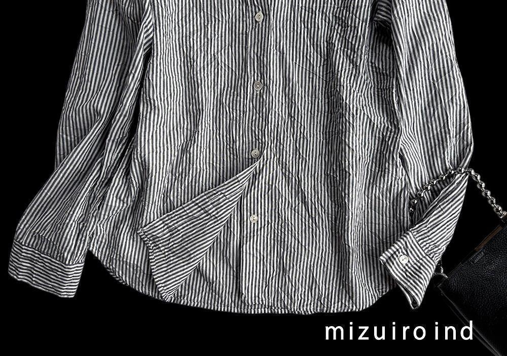 ☆mizuiroind ミズイロインド☆ ワッシャープリーツ加工のストライプシャツ。女性らしいシルエットに、細めのストライプとワッシャー加工ですっきりとした印象をプラス。 トップスにもレイヤードのインナーとしても活躍する一枚です。 ★素材・・・テンセル60% コットン40% ★サイズ・・F 着丈65 肩幅39 脇幅46 袖丈58.5 ★状態・・・目立った傷や汚れなし | ||