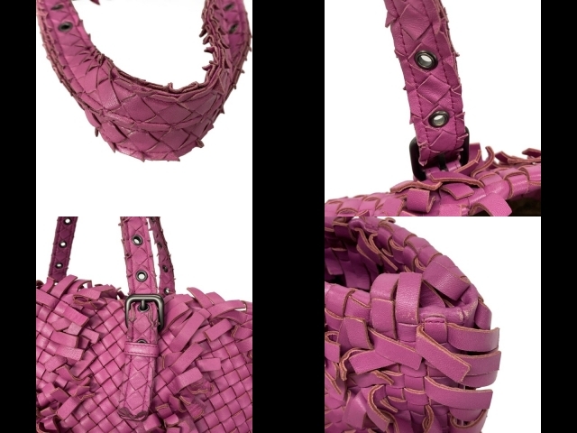 ボッテガヴェネタ BOTTEGA VENETA トートバッグ 278480 パッチワーク イントレチャート リドバッグ レザー ピンクパープル フリンジ バッグ