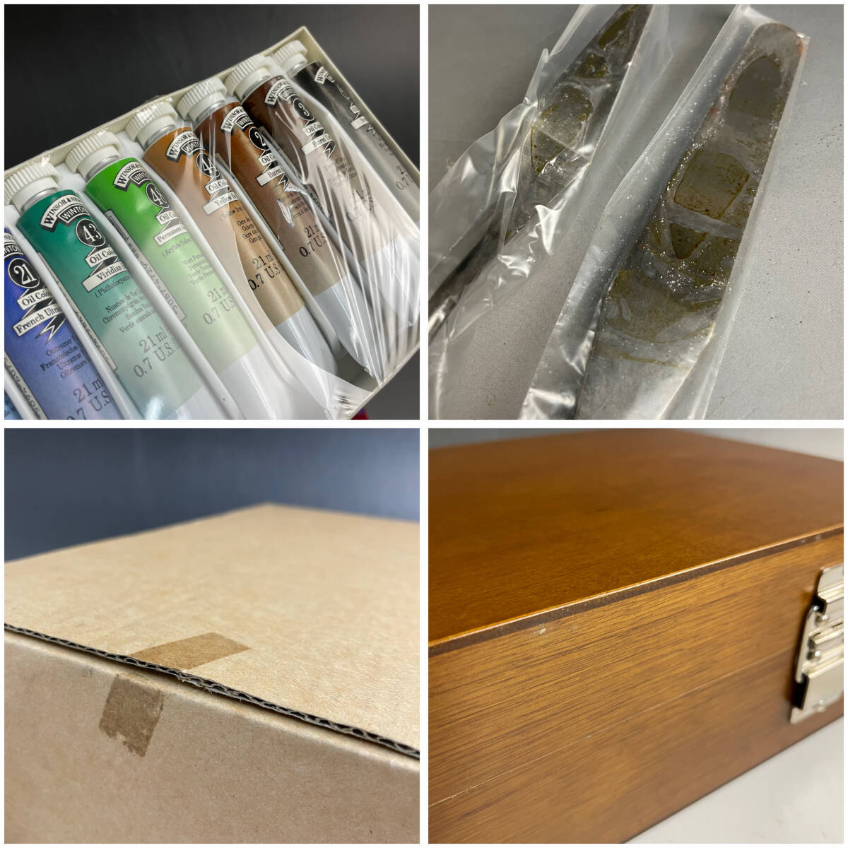 長期保管品です。 絵具は固まってないかと思いますが 中身の確認を行ってない為 保証は出来かねます。 触って柔らかい印象は受けてます。 その他ヘラのようなものは 袋とくっついています。 絵具はフィルム破れてます。 現状品です。 写真にて状態の確認をお願いいたします。 ※発送方法は、商品、あるいは商品の箱に 直接プチプチを二週巻き発送します。 巻き段ボール・段ボールでの梱包はありませんので ご理解の上ご入札に参加ください。 その他細かな詳細は画像参照でお願いします。 扱っている商品は骨董品や中古品を扱っております。 極端に目立つ欠損は説明文・画像にて表記致しますが、 多少スレ・キズ・汚れなどがある品としてご理解下さい。 |