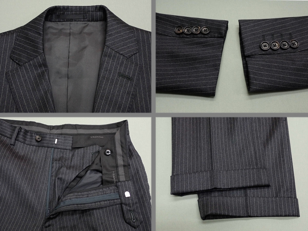 VISARUNO ビサルノのシングルスーツです。総裏地付きのセンターベント仕様、ノータックで裾はダブルです。素敵にお使い頂けると思います。気になる方は是非ご検討下さい。 | |